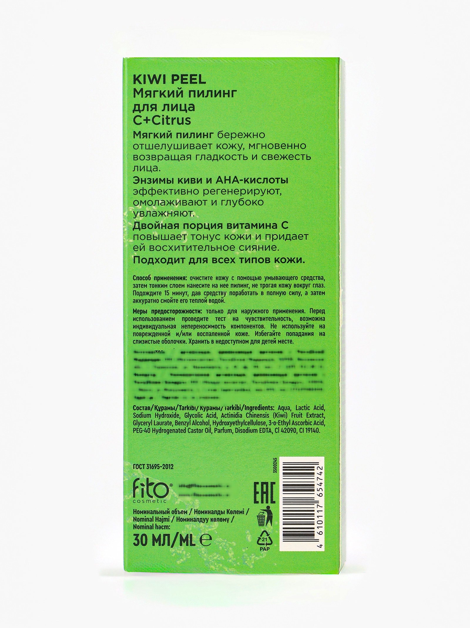 Пилинг для лица с витамином С+Citrus мягкий, 30 мл, Fitoкосметик, Россия