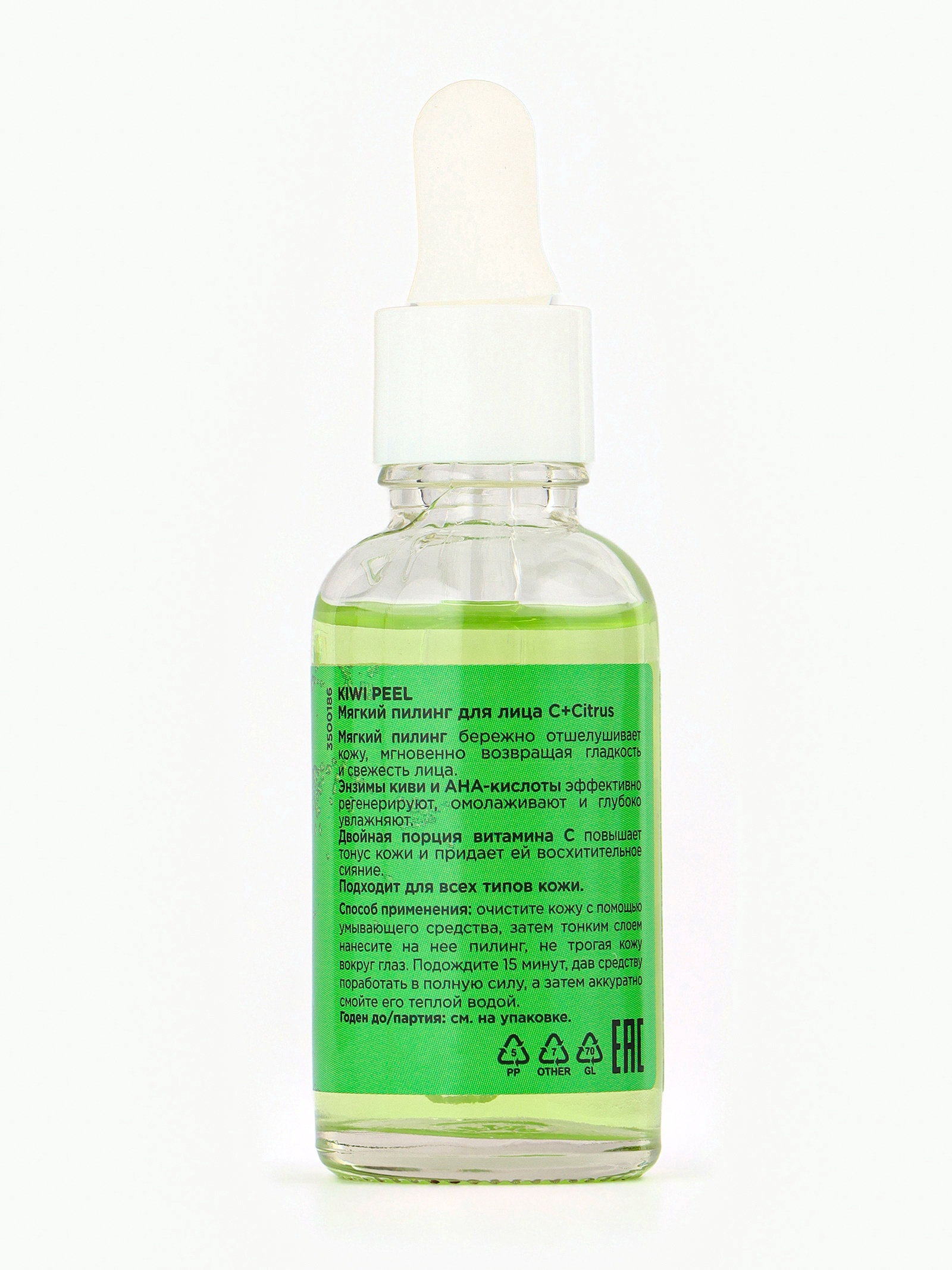 Размер упаковки: 4 x 5 x 12 см. tnved: 3304990000 Температурное ограничение: Нет Назначение: Пилинг, отшелушивание Назначение: Пилинг, отшелушивание Вид: Пилинг Мягкий пилинг бережно отшелушивает кожу, мгновенно возвращая гладкость и свежесть лица. Энзимы киви и AHA-кислоты эффективно регенерируют, омолаживают и глубоко увлажняют. Двойная порция витамина С повышает тонус кожи и придает ей восхитительное сияние. Подходит для всех типов кожи. Способ применения: нанесите 3-5 капель сыворотки на очищенную кожу, слегка помассируйте до полного впитывания. Может использоваться самостоятельно, а также в сочетании со средствами вашего ежедневного ухода. Состав: Aqua, Lactic Acid, Sodium Hydroxide, Glycolic Acid, Actinidia Chinensis (Kiwi) Fruit Extract, Glyceryl Laurate, Benzyl Alcohol, Hydroxyethylcellulose, 3-o-Ethyl Ascorbic Acid, PEG-40 Hydrogenated Castor Oil, Parfum, Disodium EDTA, Cl 42090, CI 19140. Условия хранения: хранить при температуре от 0 ℃ до +25 ℃, в недоступном для детей месте. | ||