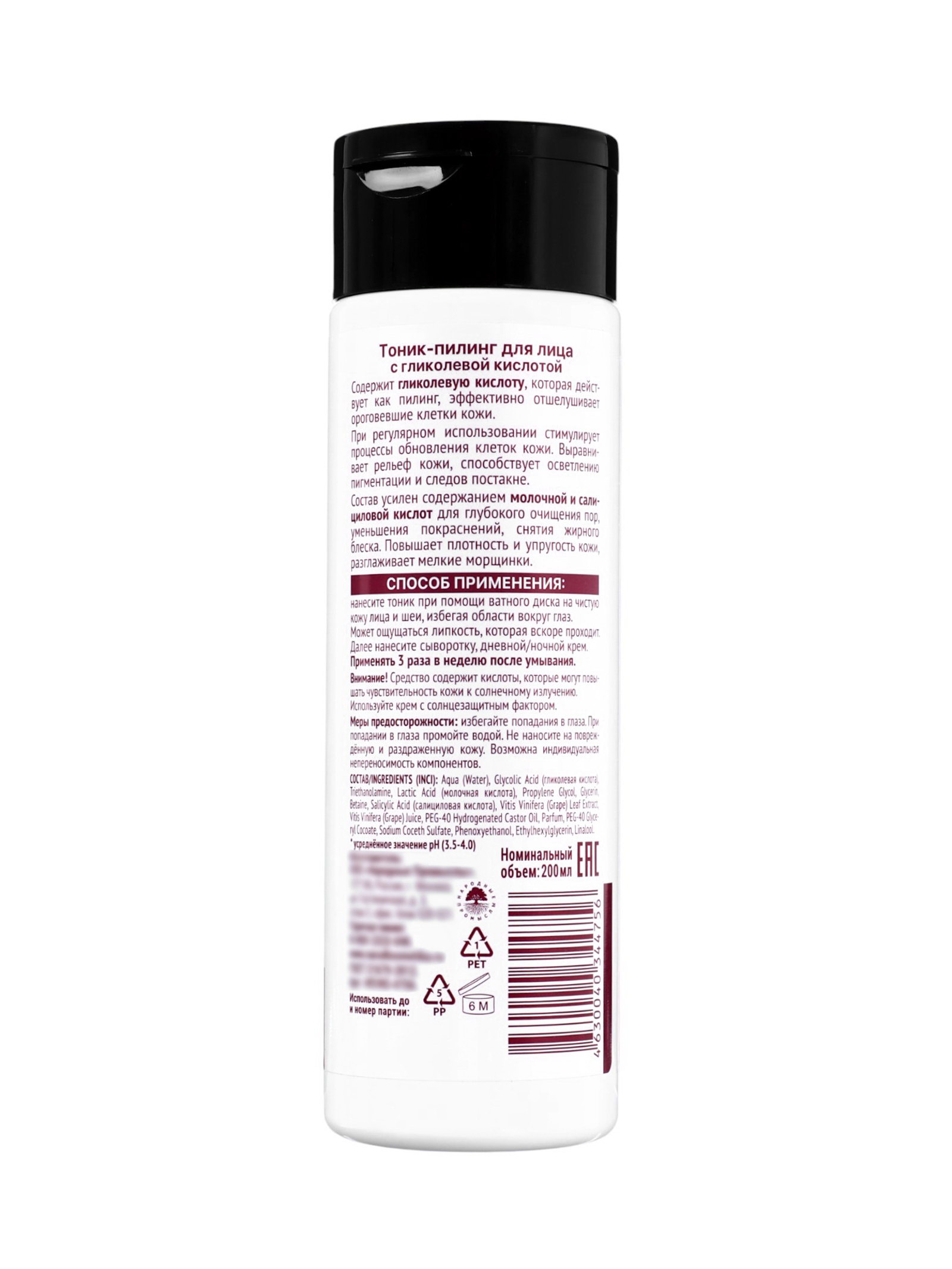 Тоник-пилинг для лица с гликолевой кислотой, 200 мл, NOVOSVIT, Россия