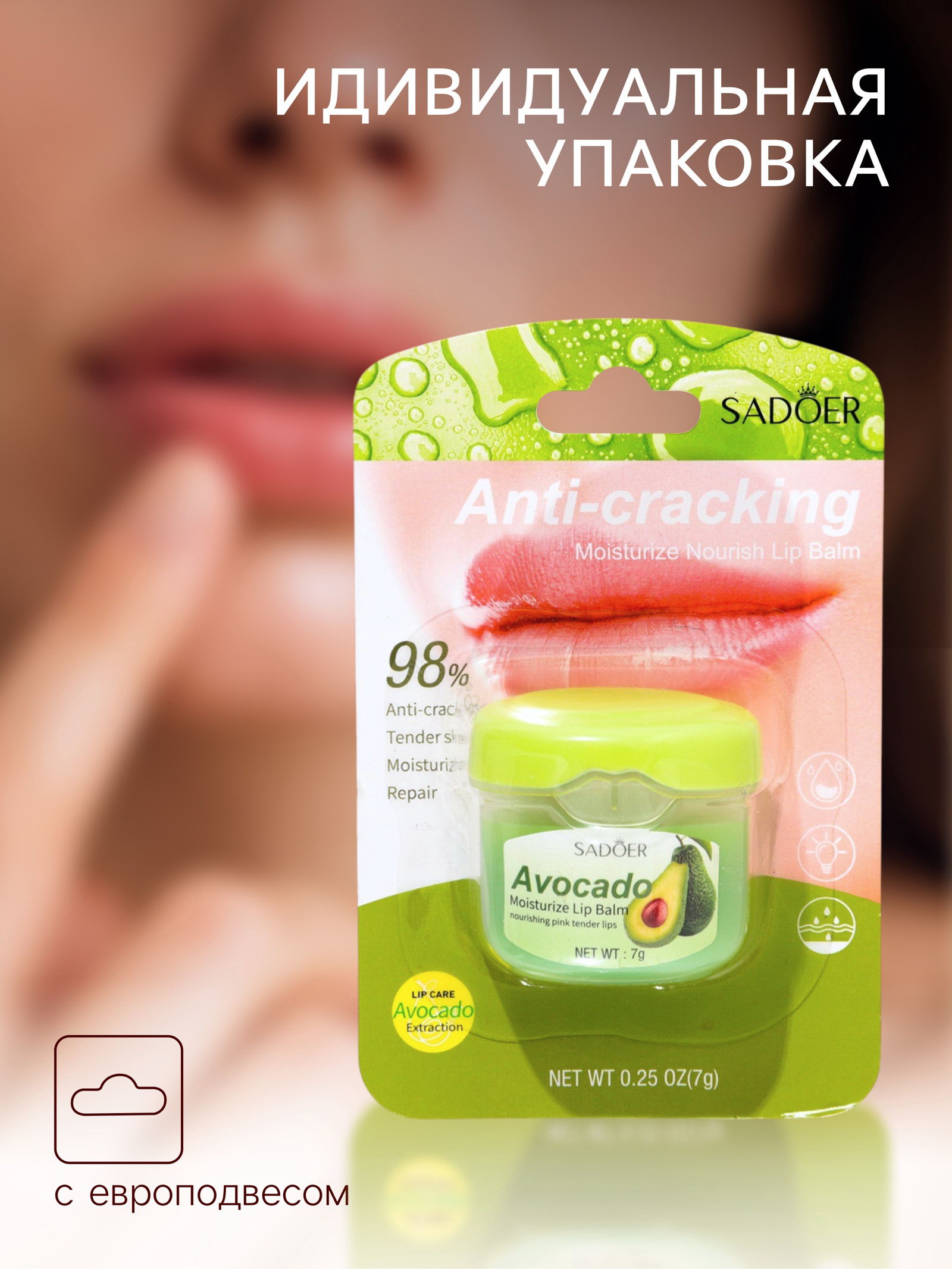 Бальзам для потрескавшихся губ с авокадо, 5x10x10 см., SADOER, Китай