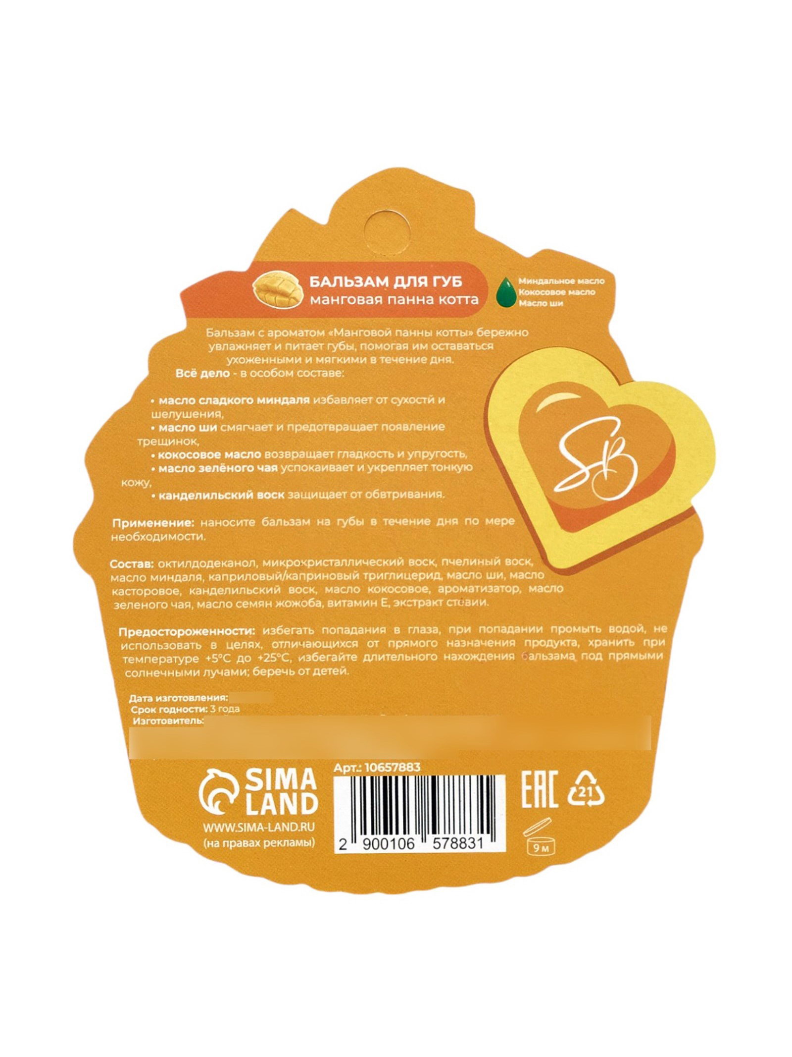 Бальзам для губ "Манговая панна котта", SB BEAUTY, Китай