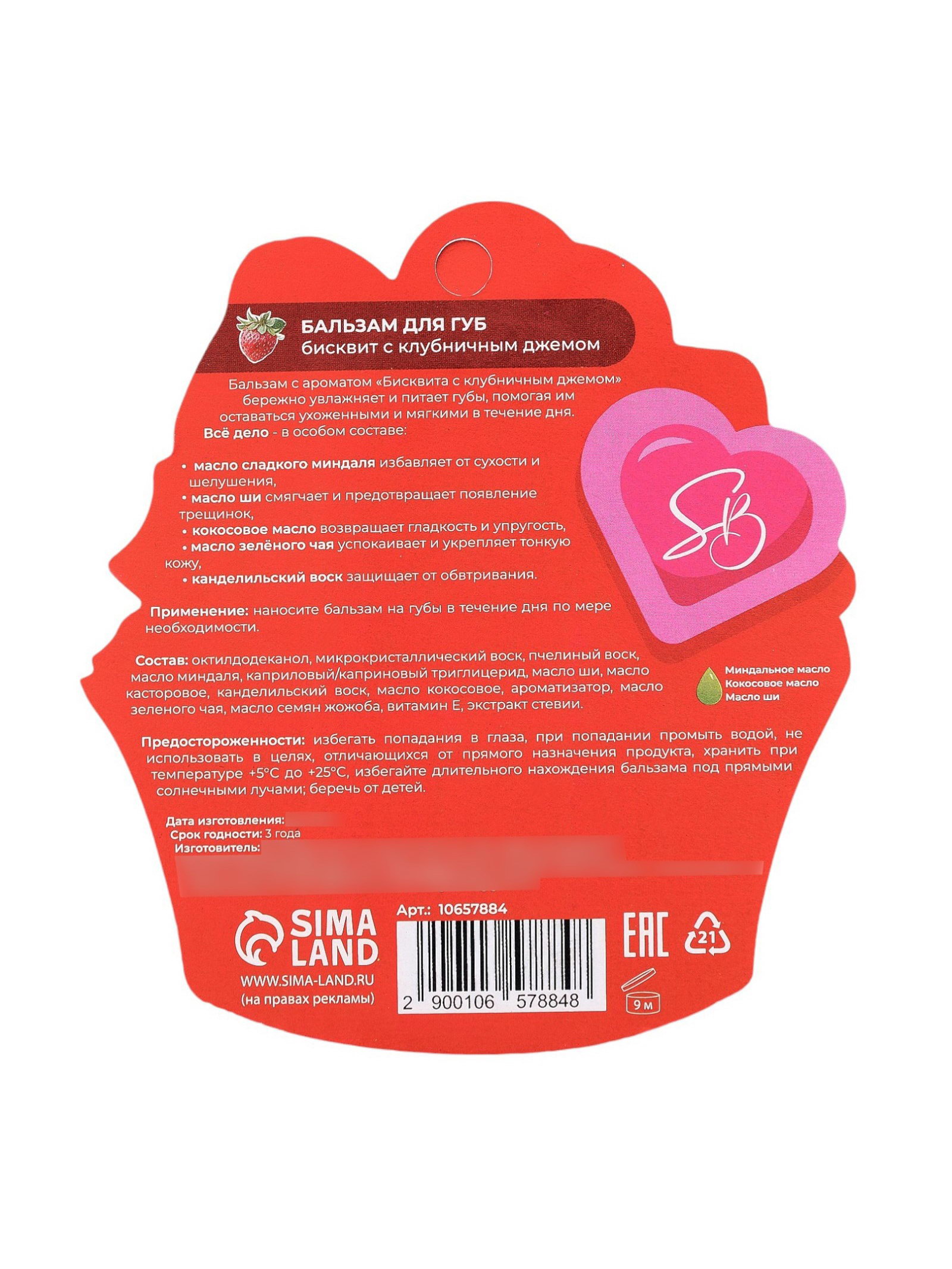Бальзам для губ "Бисквит с клубничным джемом", SB BEAUTY, Китай