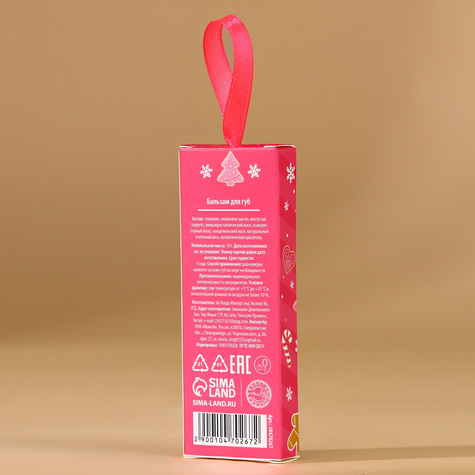 Бальзам для губ "Снежные поцелуи", 10 г, аромат клубничного джема, 3x8x2 см., URAL LAB, Китай