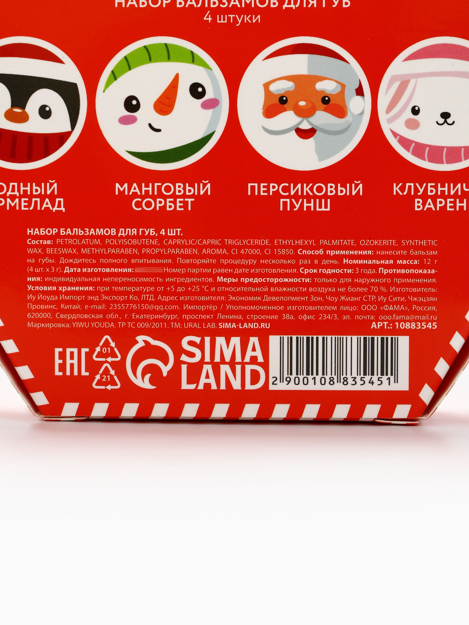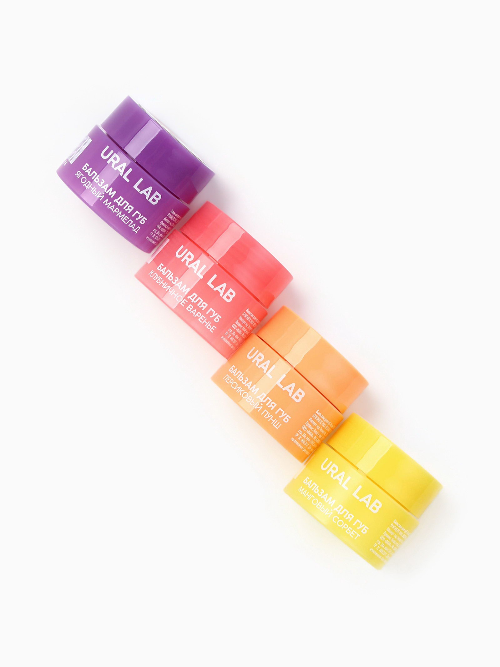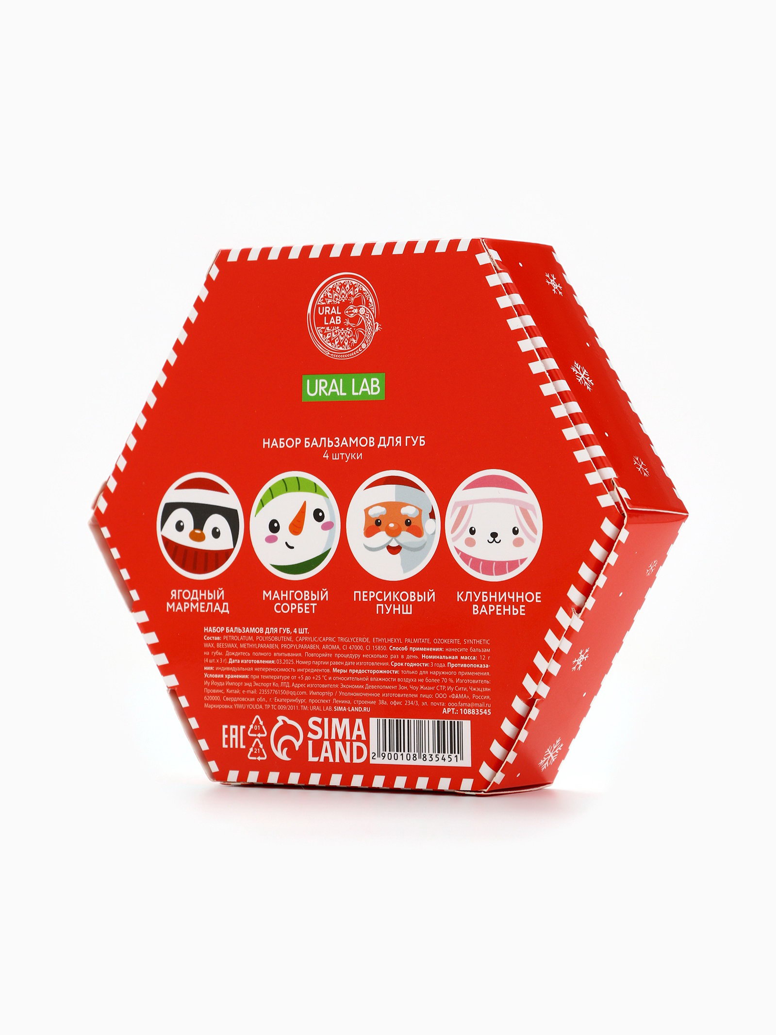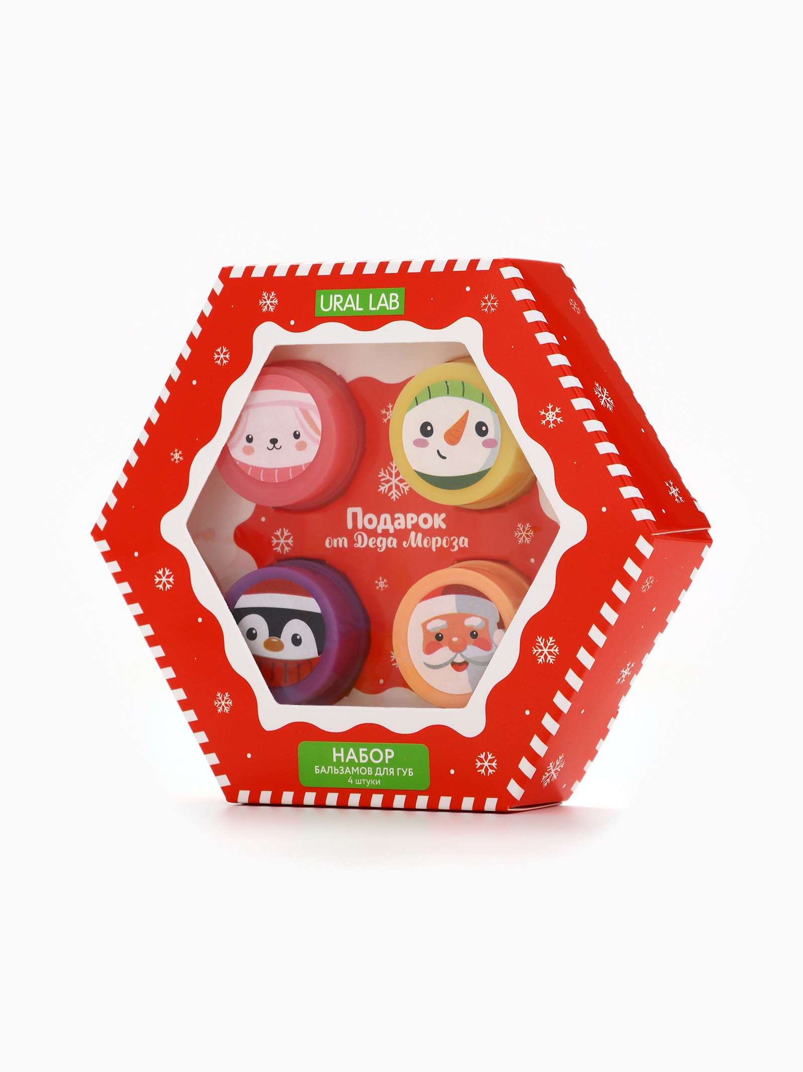 Бальзамы для губ, набор 4 шт x 3 г, 12x10x15 см., URAL LAB, Китай