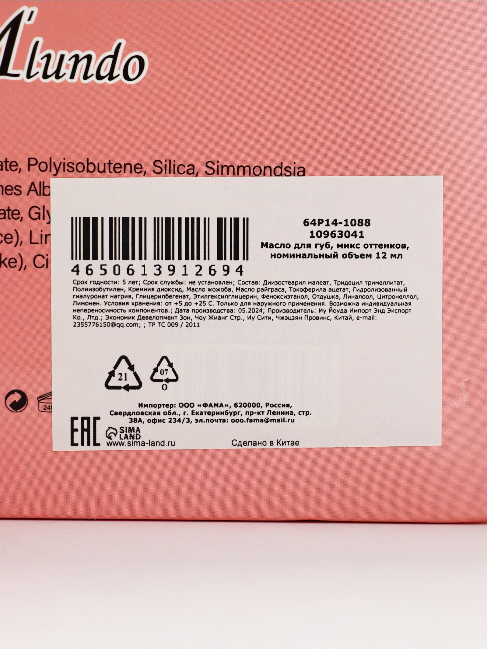 Масло для губ 12мл, микс оттенков, 2x2x9.4 см., Mlundo, Китай