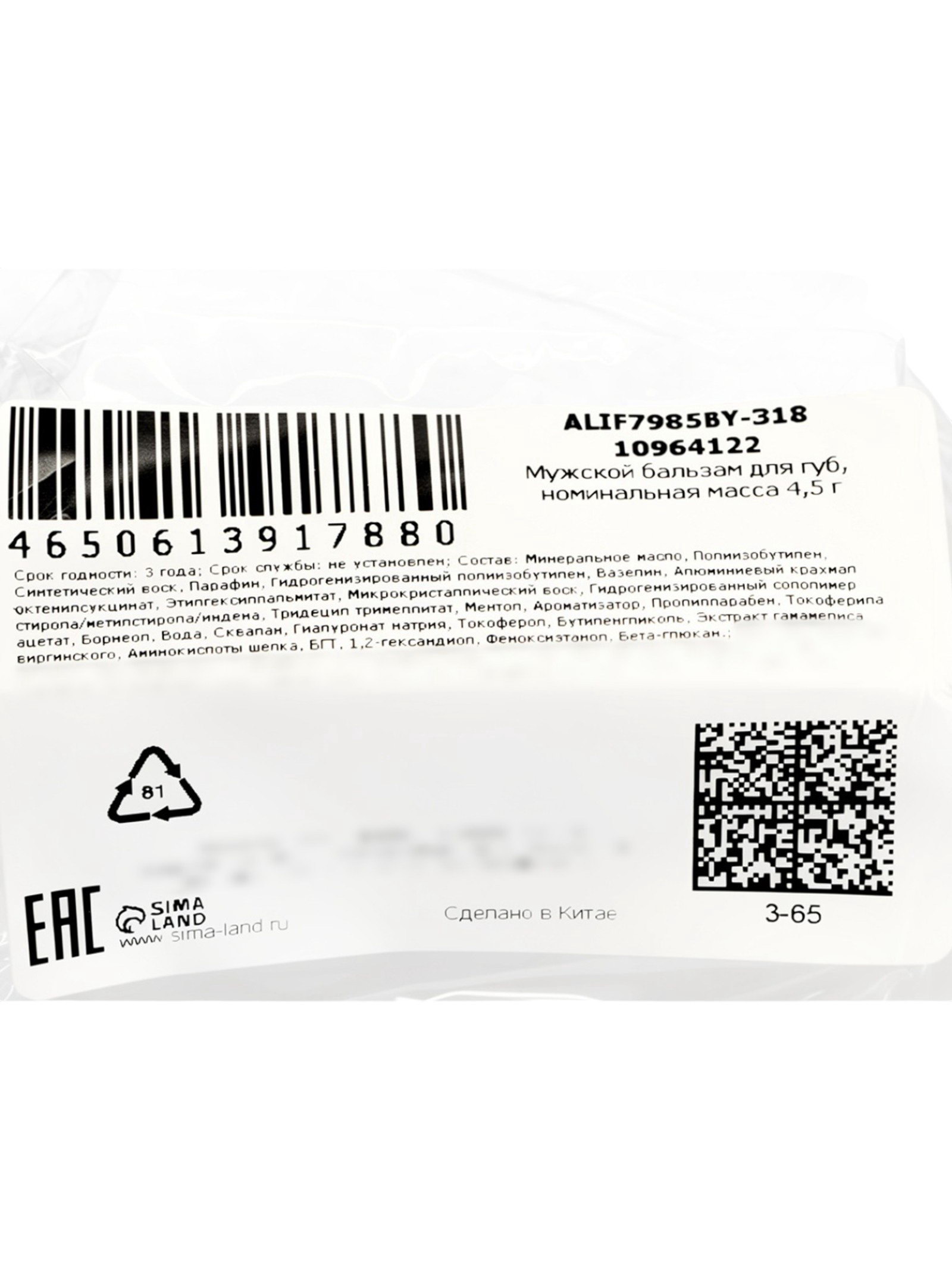 Мужской бальзам для губ увлажняющий 4.5 г, SADOER, Китай