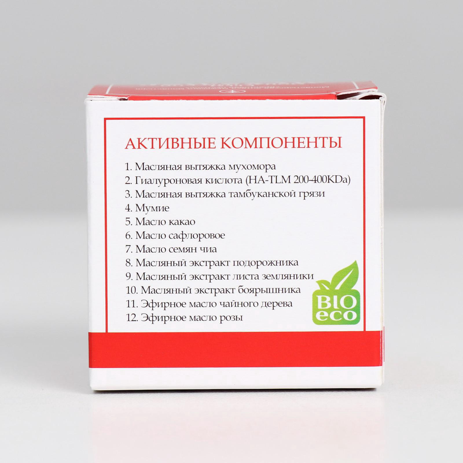 Размер упаковки: 5.5 x 5.5 x 5.5 см. Размер упаковки: 5.5 x 5.5 x 5.5 см. Назначение: Питание и восстановление tnved: 3304990000 Температурное ограничение: Нет Вид: Крем Область применения: Для области вокруг глаз Вес, г/Объём, мл: 50 Возраст: Для всех возрастов Тип кожи: Для всех типов Применение: Универсальный Свойства Основной компонент мази вытяжка из мухомора. Содержит массу полезных веществ, которые защищают кожу от внешних воздействий, повышают её упругость и эластичность. Богатый набор аминокислот, витаминов, фосфолипидов, эссенциальных, полиеновых кислот питает клетки, оказывает антиоксидантный и иммуномодулирующий эффект. При регулярном применении повышаются барьерные функции кожи, регенерация, улучшается микроциркуляция. Способ применения Небольшое количество крема нанесите от внутренней точки верхнего века к нижнему веку, немного помассируйте кожу. При этом необходимы прихлопывающие движения, чтобы крем полностью впитался. Состав: нарзан кисловодский (скважина 7-РЭ), масляная вытяжка мухомора, отвар мухомора, гиалуроновая кислота НА-TLM 200–400KDa, масляная вытяжка целебной тамбуканской грязи, мумиё, белый воск, масло какао, масло сафлоровое, масло семян чиа, масляные экстракты подорожника, листа земляники, боярышника, прополиса, настой цветов лаванды, эфирное масло чайного дерева, эфирное масло розы. | ||