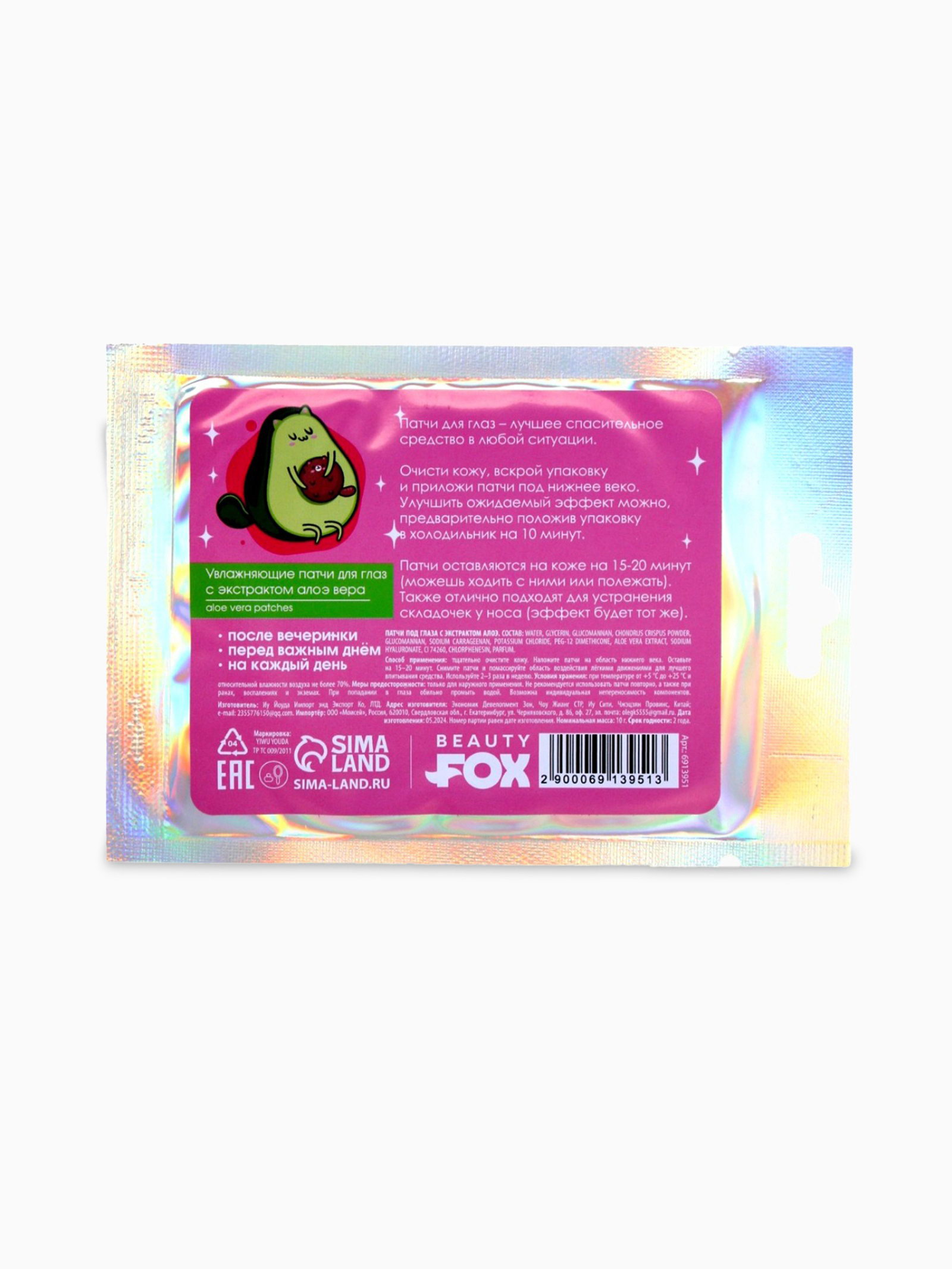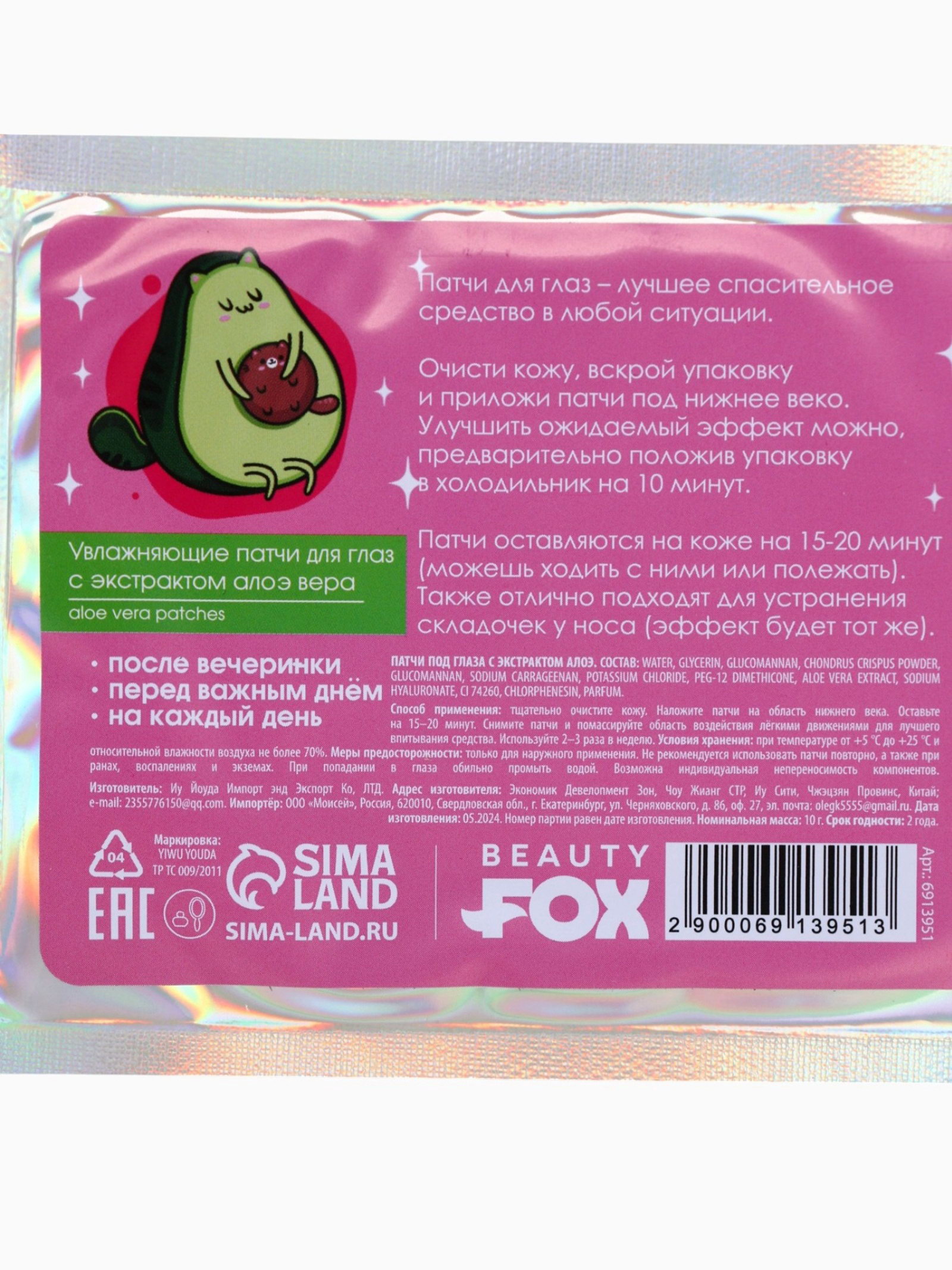 Патчи для глаз "Мой стиль-авокадо", 1 пара, гидрогелевые с экстрактом алое, 9x13.5x0.5 см., Beauty Fox, Китай