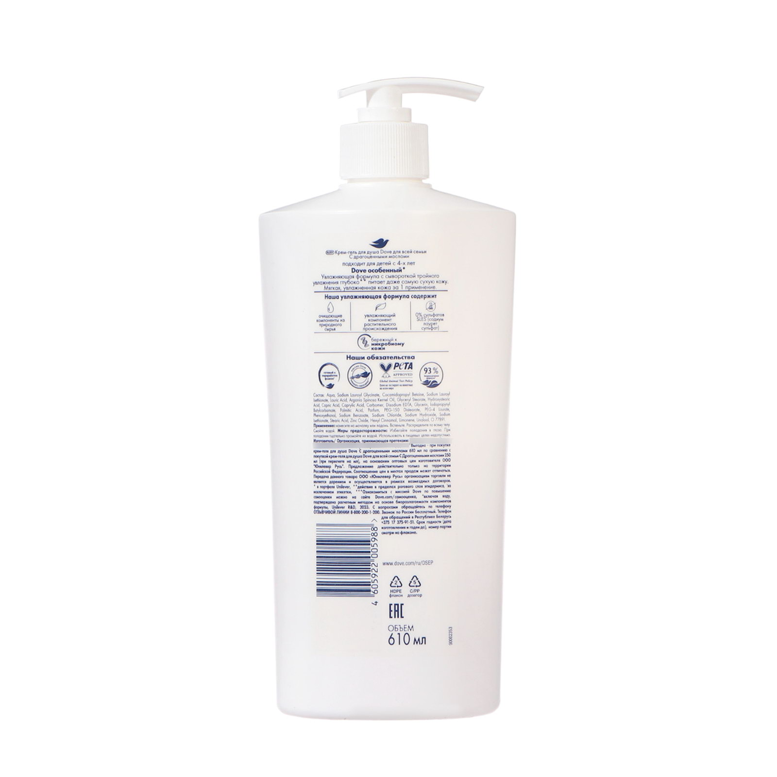 Гель-крем для душа с драгоценными маслами, 610 мл, 610 мл., Dove, Россия