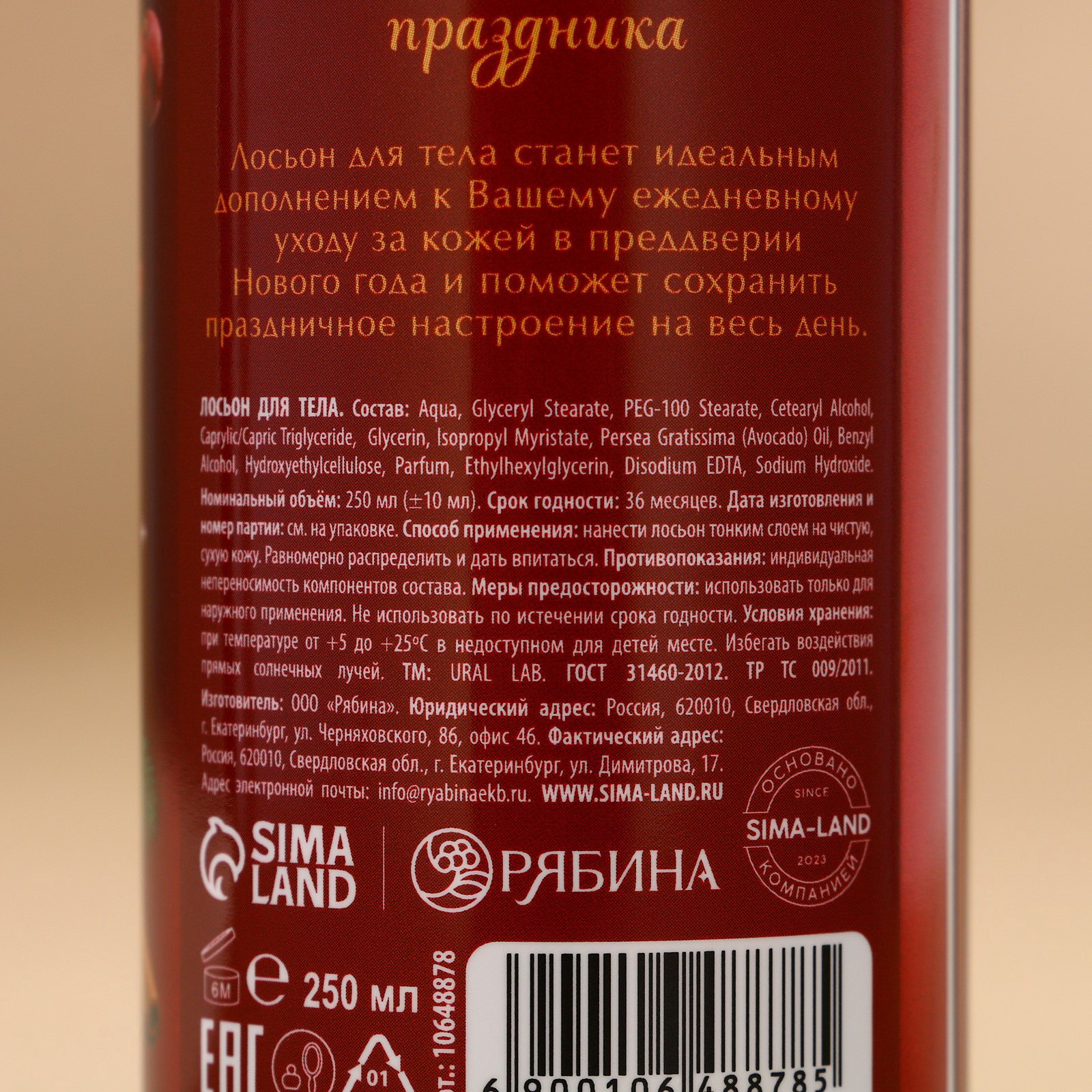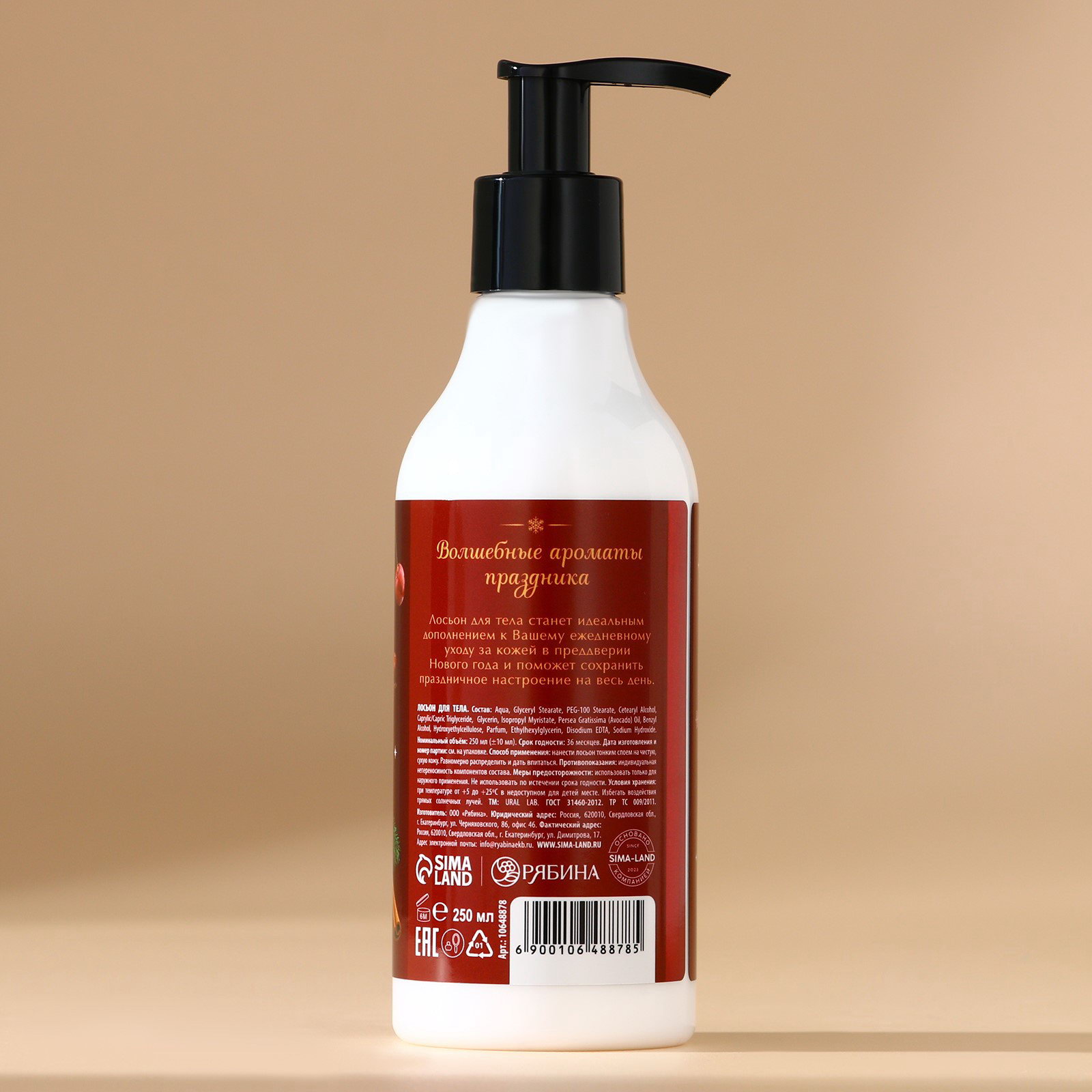 Область применения: Для тела, Для тела Назначение: Питание и восстановление, Увлажнение Возраст: Для взрослых, Для всех возрастов Размер упаковки: 5.5 x 17.5 x 6 см. Вид: Лосьон Набор: Нет Тематика праздника: Новый год Для кого: Для женщины Темпер. ограничение НЕ ВЫШЕ ℃: +25 Адресат: Без адресата Темпер. ограничение НЕ НИЖЕ ℃: +5 Аромат: Пряная вишня Вид упаковки: Без упаковки Тематика подарка: Уходовая косметика Вес, г/Объём, мл: 250 Символ года: Нет Тематика: Новогодняя tnved: 3304990000