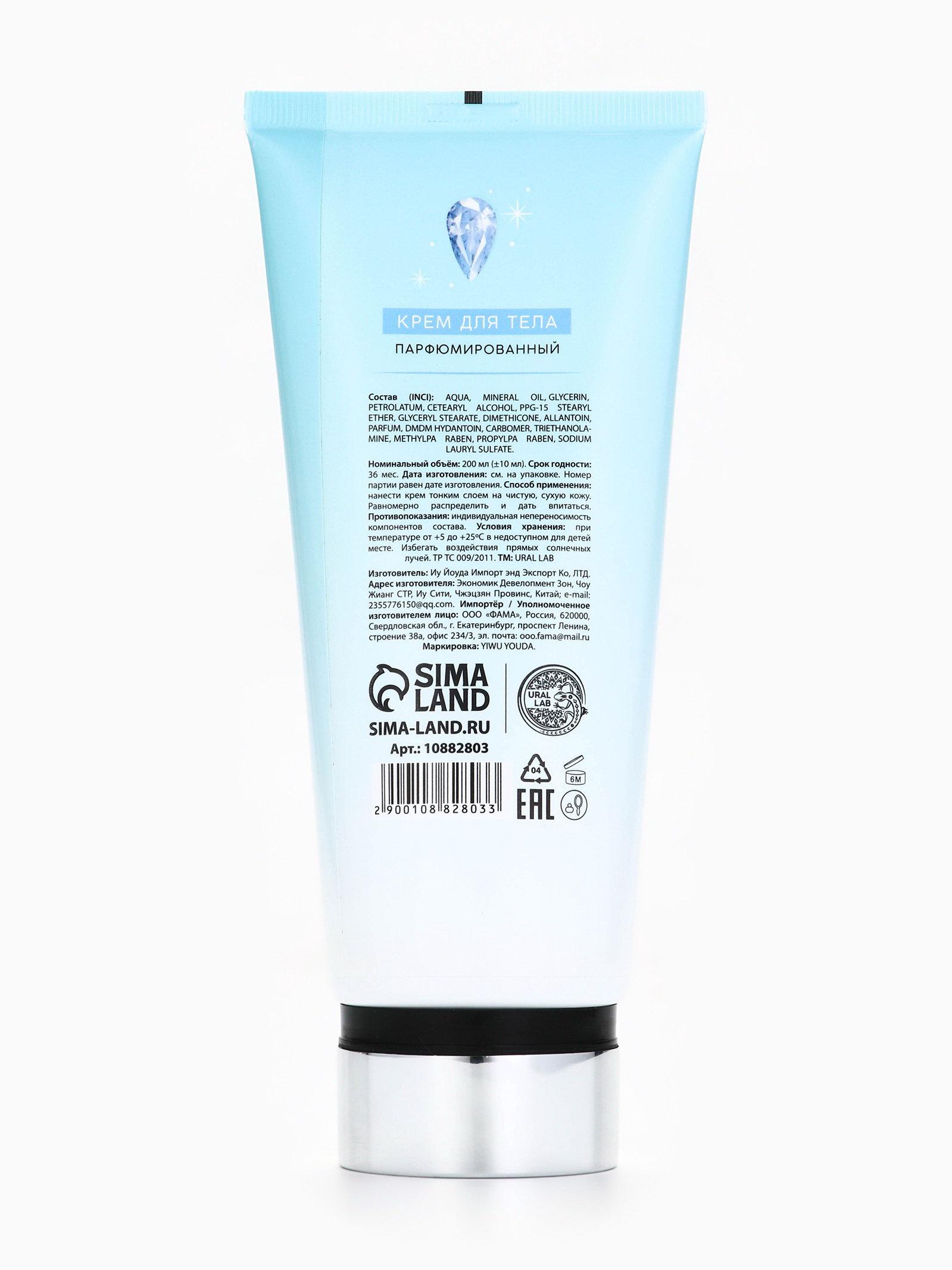 Крем для тела новогодний парфюмированный Winter Jewels, 200 мл, 5.1x7.8x18 см., URAL LAB, Китай