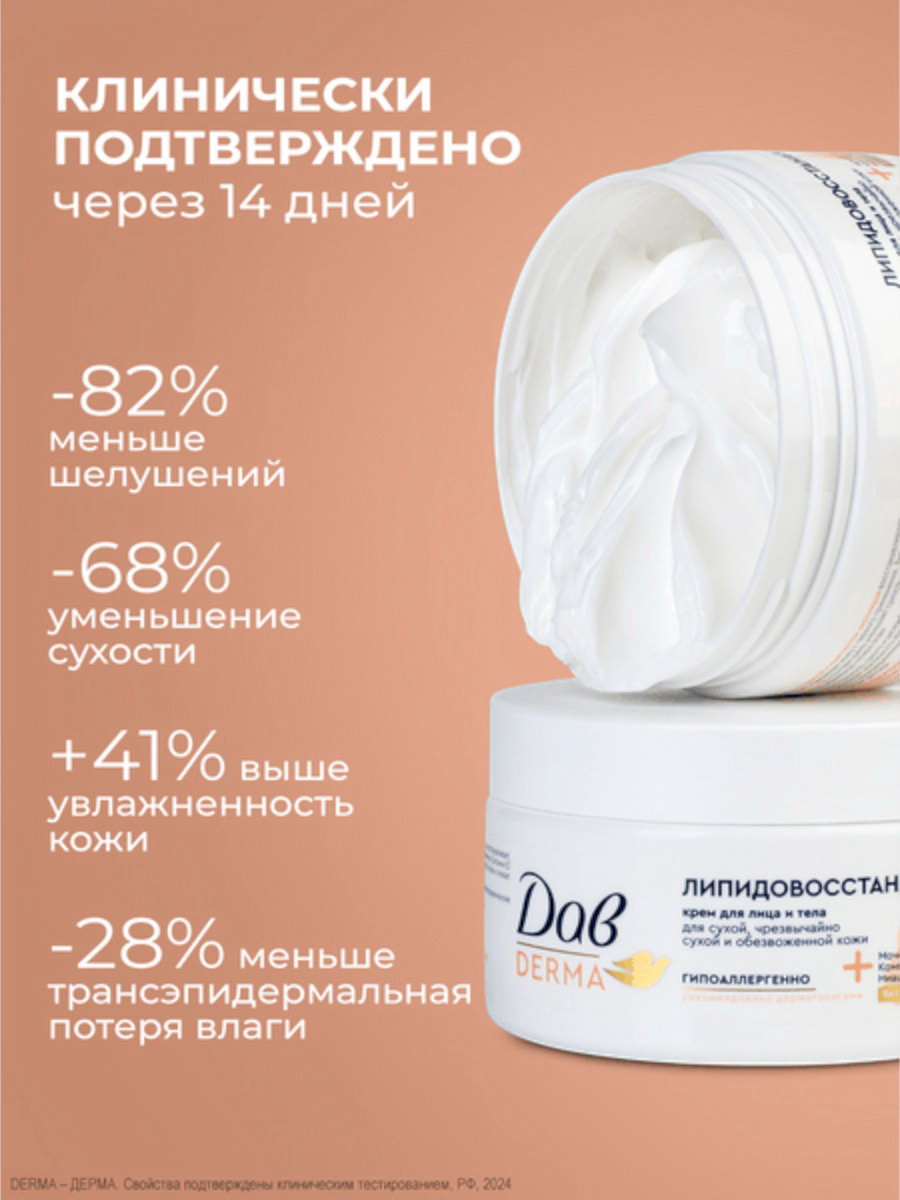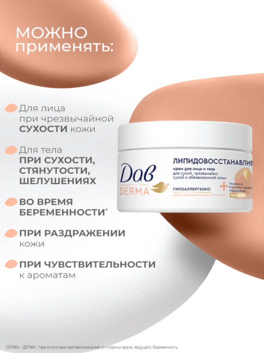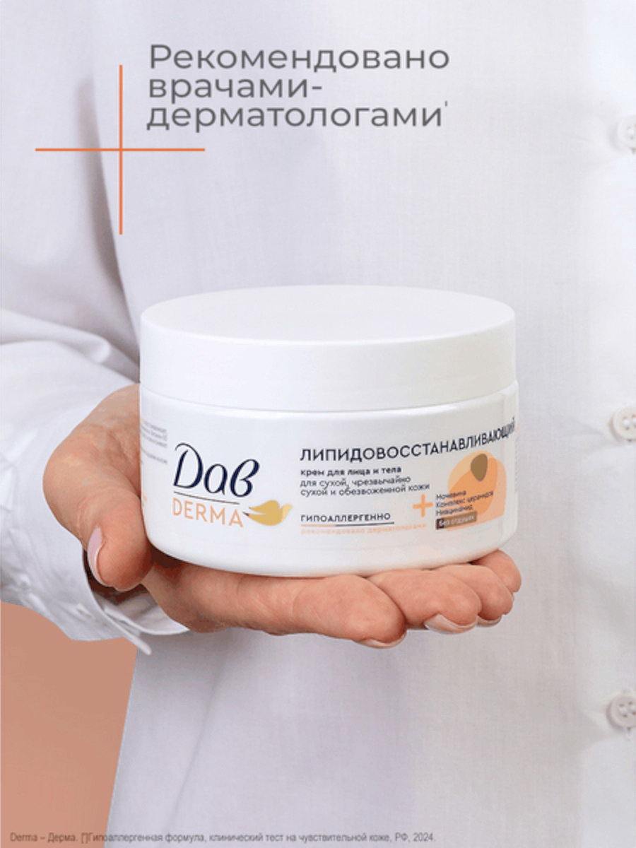 Крем для лица и тела гипоаллергенный, липидовосстанавливающий, 285 мл, 285 мл., Дав, Россия
