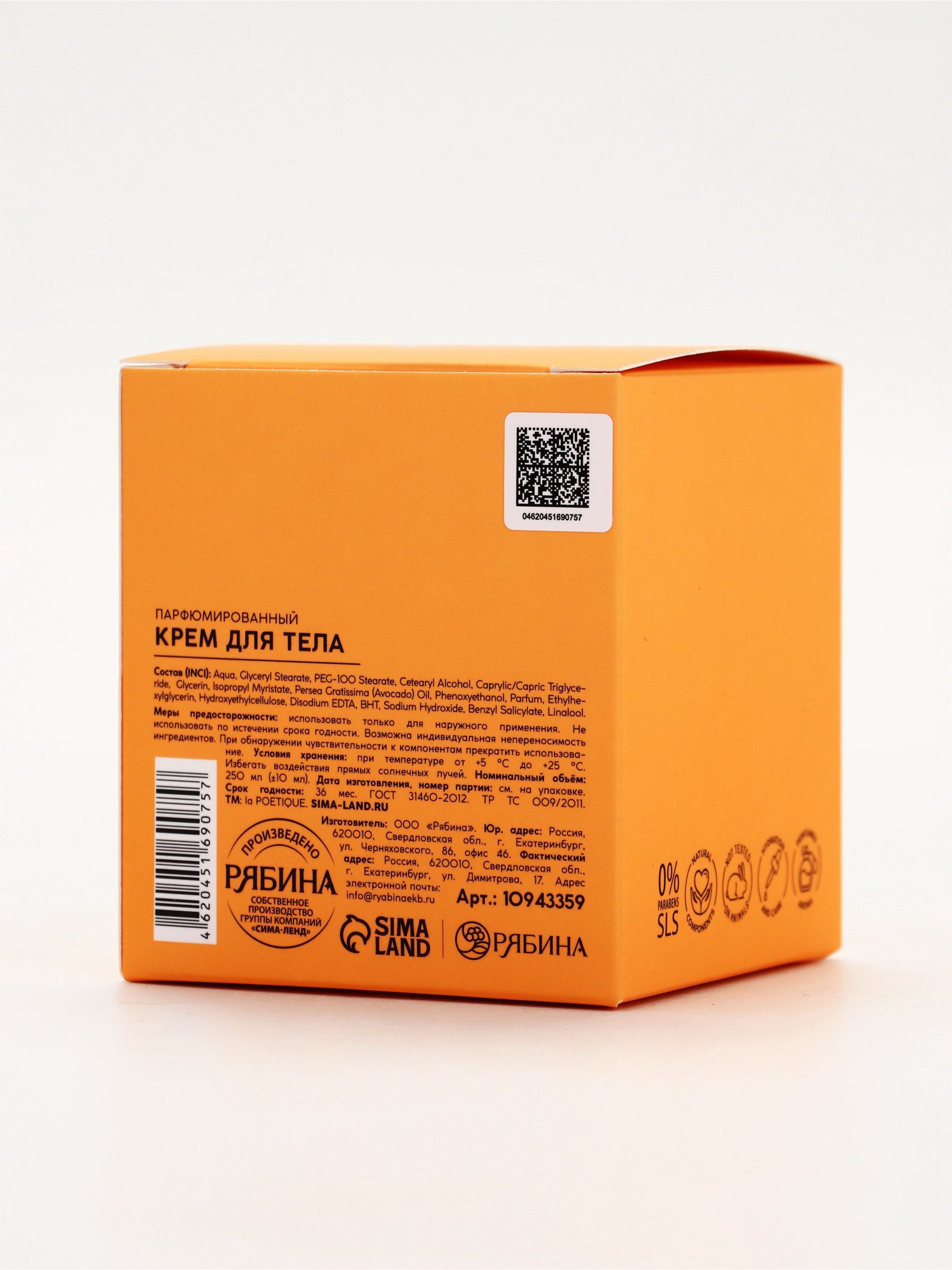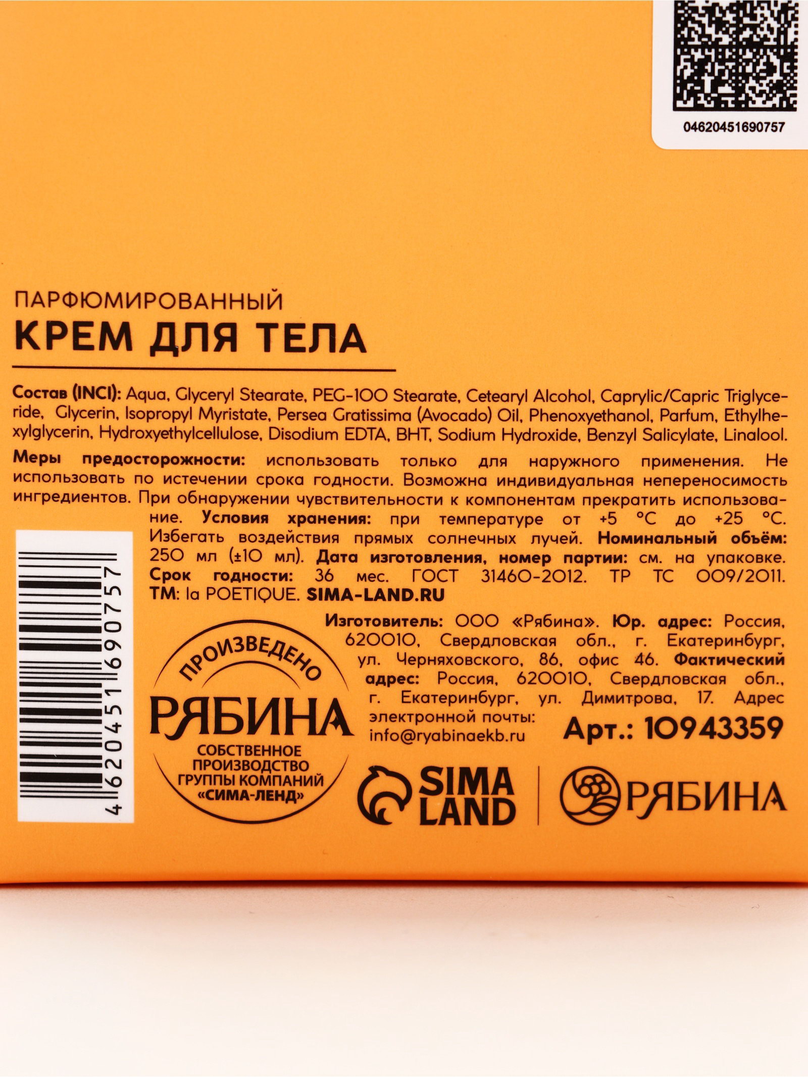 Крем для тела парфюмированный, аромат "Белый мускус и цитрусовые", 250 мл, 250 мл., laPOETIQUE, Россия