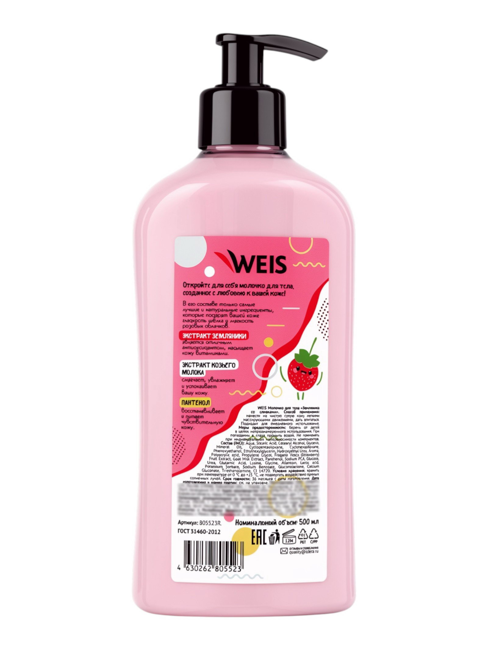 Молочко для тела земляника в сливках, 500 мл, 500 мл., Weis, Россия