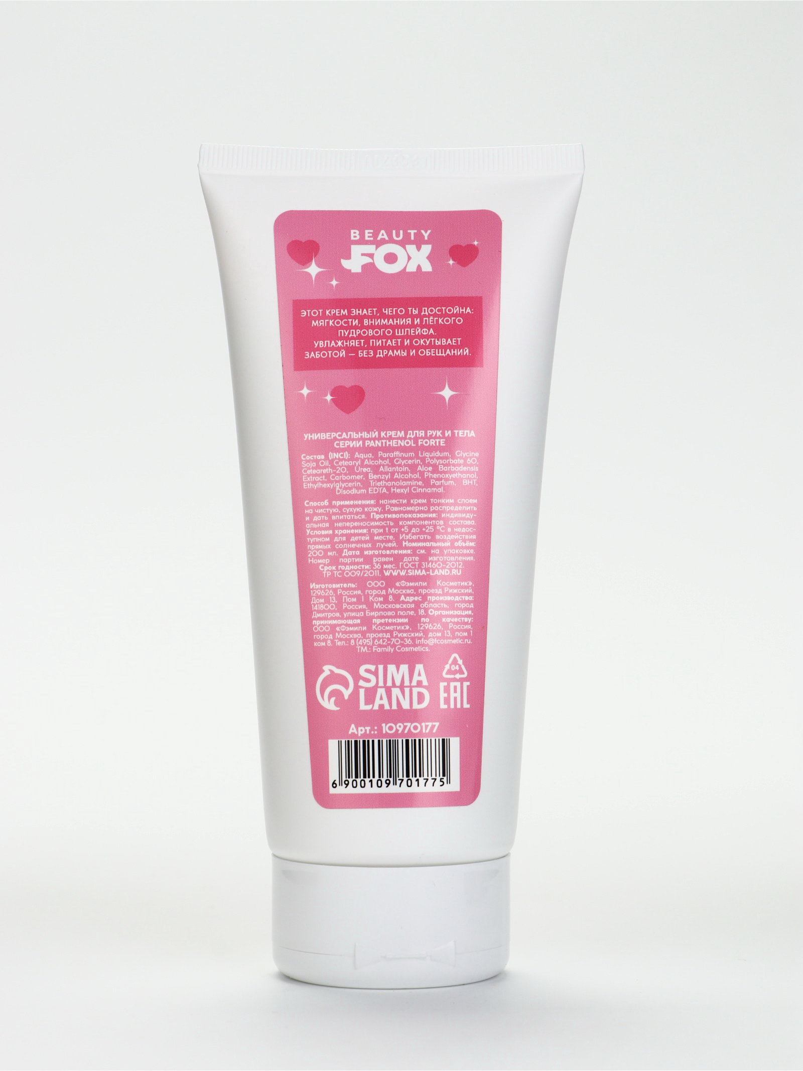 Крем для рук и тела, пудровый аромат, 200 мл, 200 мл., Beauty Fox, Россия