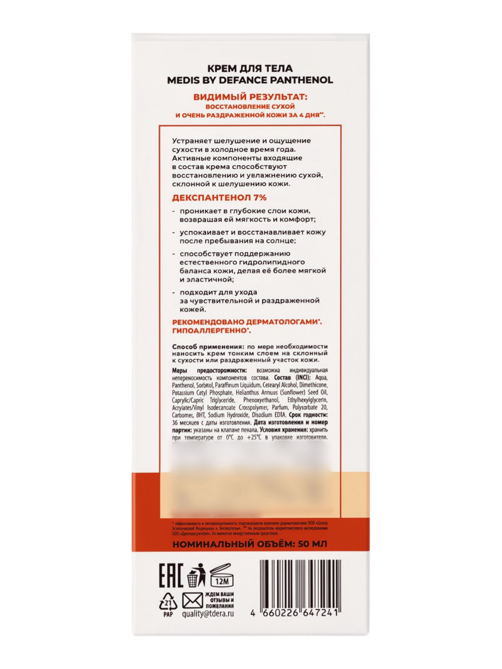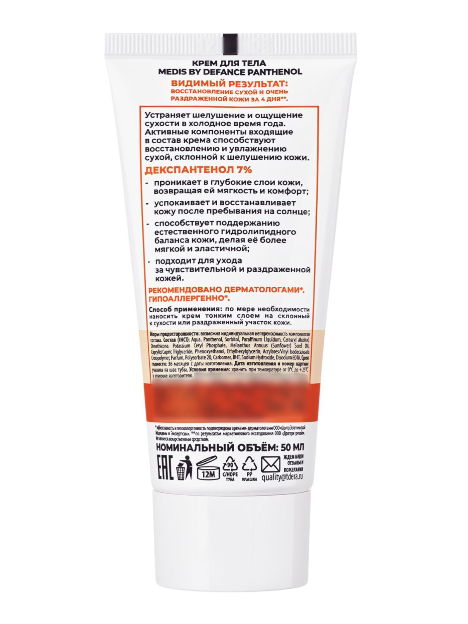 Крем универсальный для тела Medis by Defance, с пантенолом 7 %, 50 мл, MEDISANA, Россия