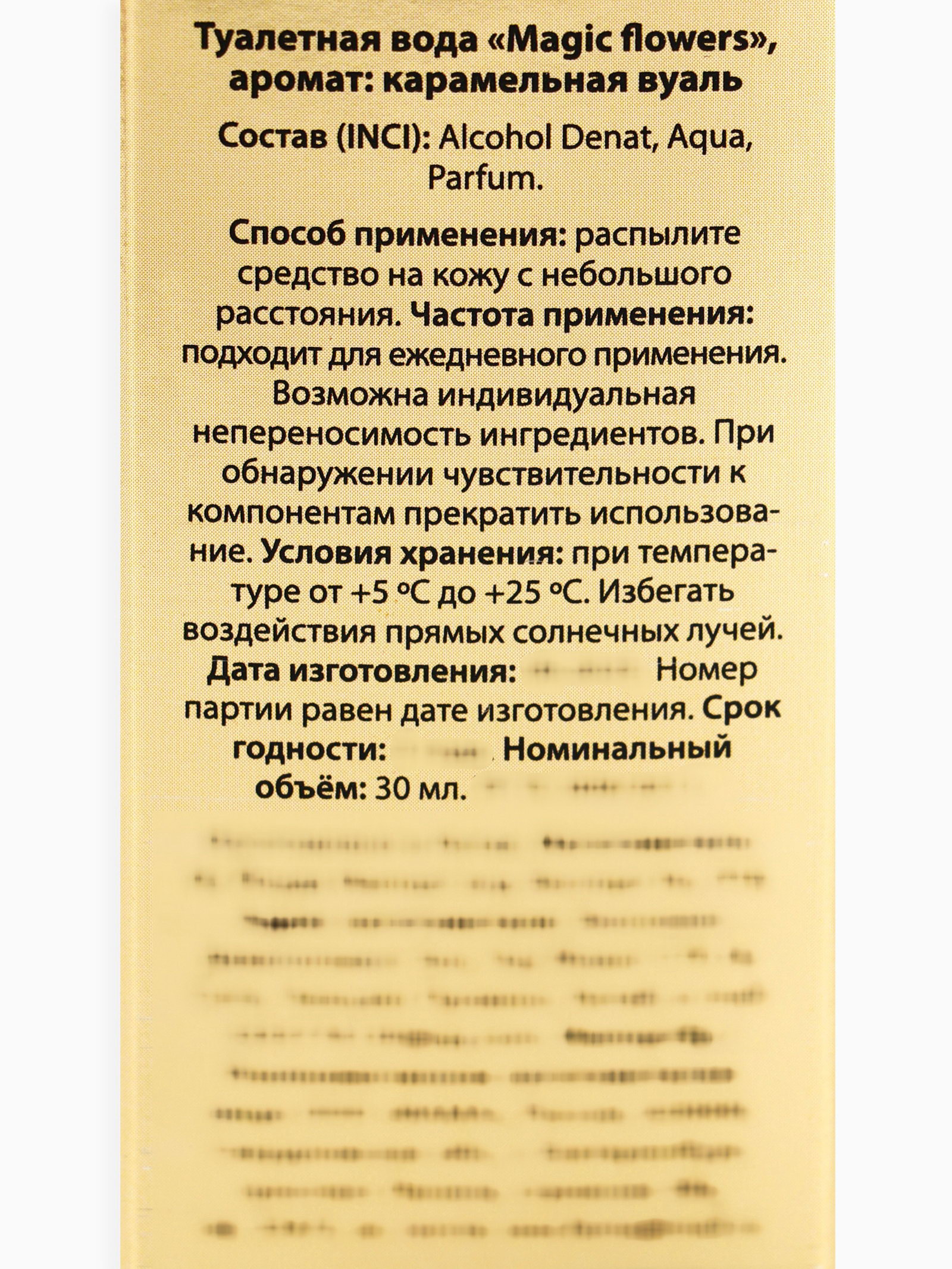 Туалетная вода Magic flowers, аромат: карамельная вуаль, 30 мл, 3.6x8.8x3.6 см., URAL LAB, Китай