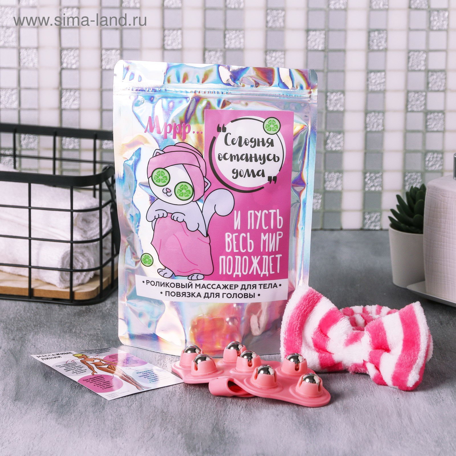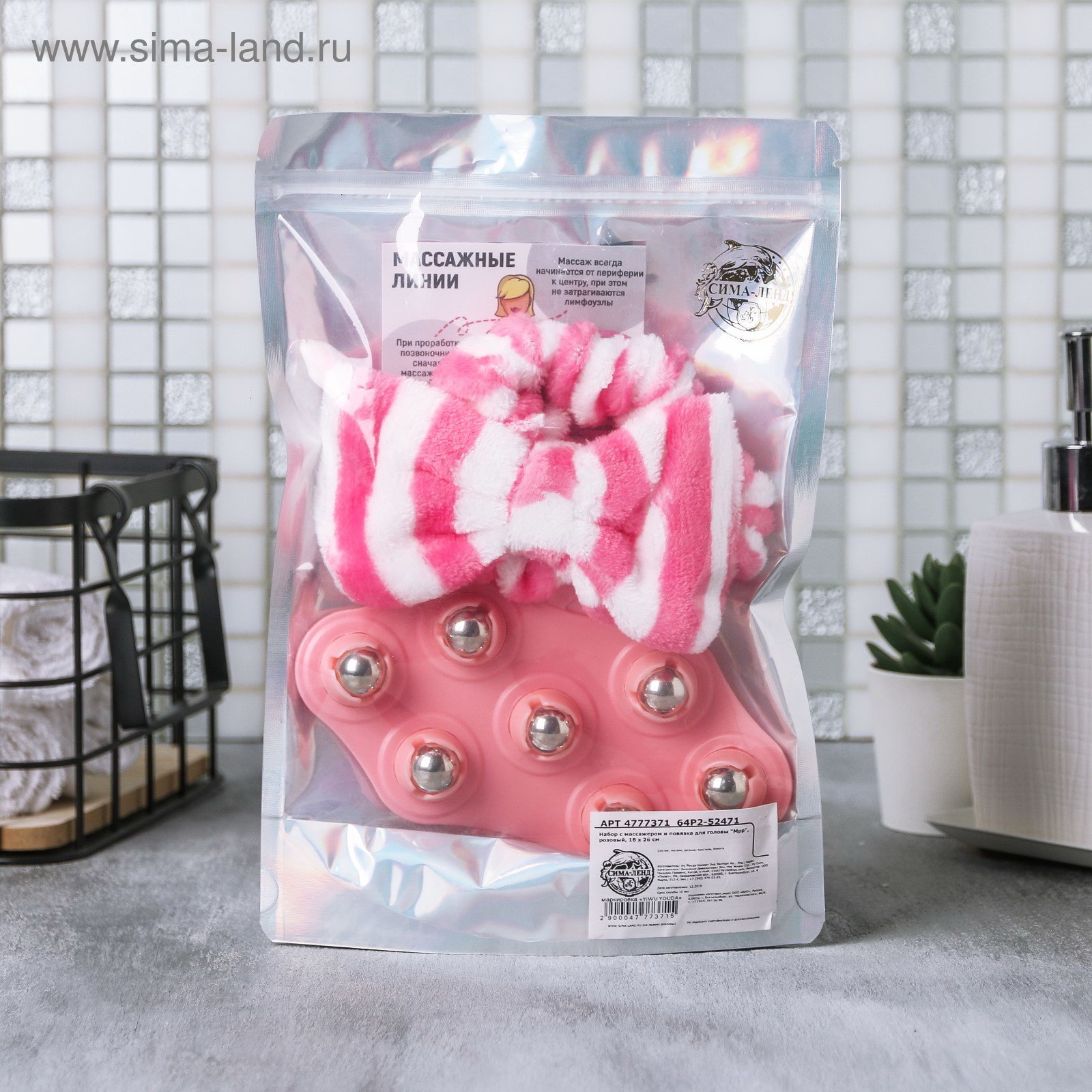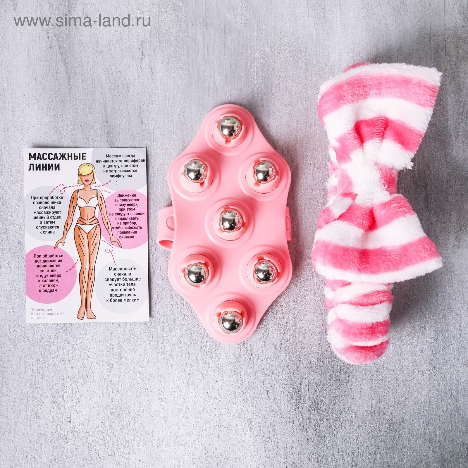 Набор: повязка для головы и роликовый массажёр "Мрр", розовый, 19 x 8.5 см, 18x3x26 см., Art beauty, Китай