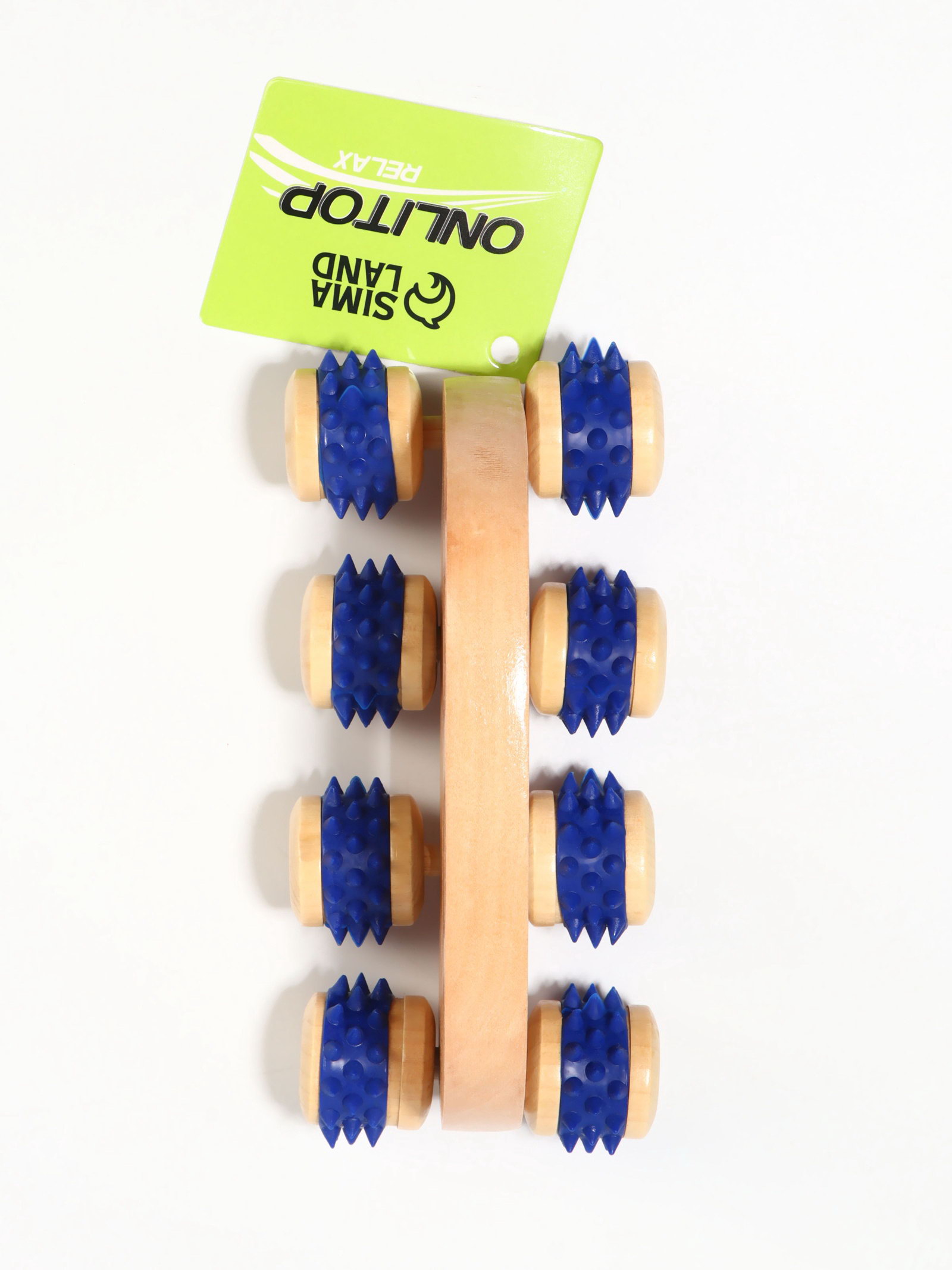 Массажёр с шипами "Гусеница", 15x6.8x6.5 см, универсальный, с ручкой, 8 колёс, деревянный, МИКС, 6.8x15x6.5 см., ONLITOP, Китай