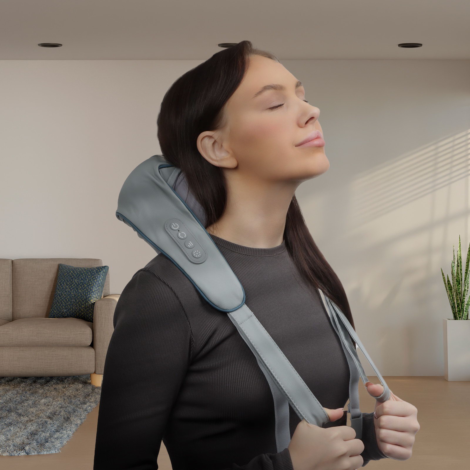 Массажёр для спины и шеи LEM-29, наплечный, ИК-подогрев, серый, 17.5x24.5x16 см., Китай