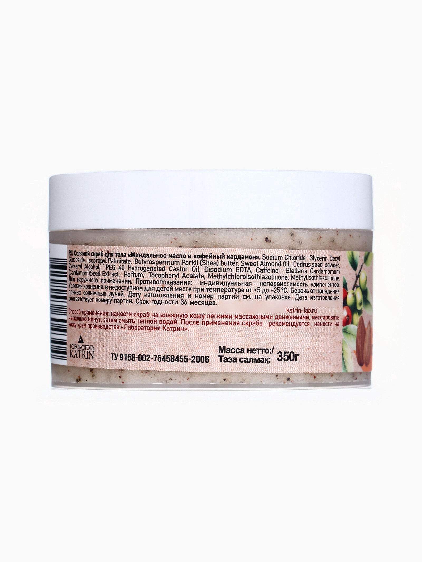 Скраб для тела соляной с маслами Ocean Spa кофейный кардамон и миндальное масло, 350 г, Laboratory Katrin, Россия