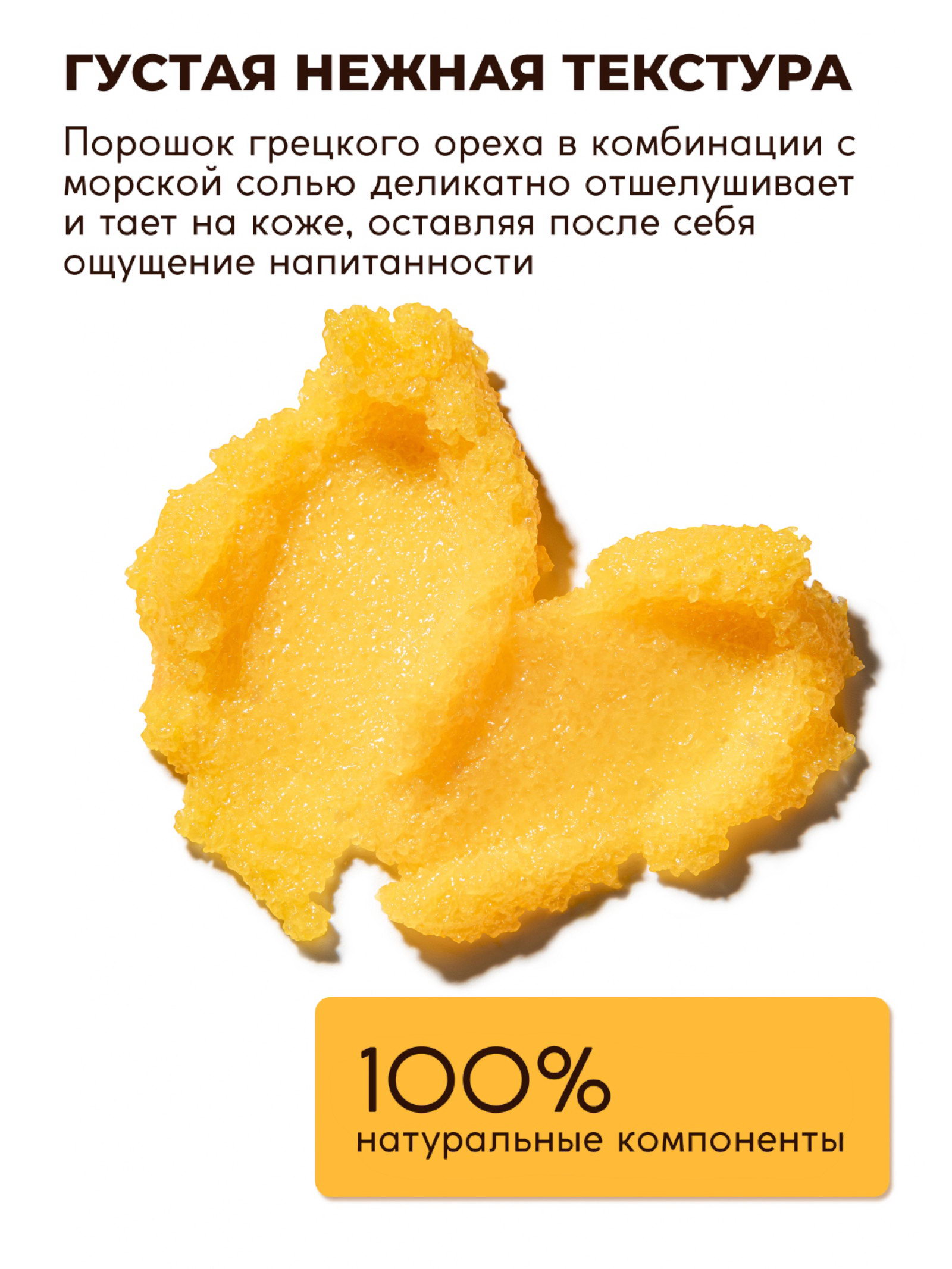 Способ применения: Нанесите скраб на влажную кожу массирующими круговыми движениями, уделяя внимание локтям, коленям и пяткам. Смойте водой. Для максимального эффекта используйте 1–2 раза в неделю. Состав: морская соль, масло ши, кокосовое масло, масло виноградных косточек, масло ромашки, эфирное масло чайного дерева, экстракт манго, пантенол, токоферила ацетат, гидроксиэтилмочевина, порошок скорлупы грецкого ореха, масло малиновых косточек, порошок ананаса, отдушка (парфюмерная композиция), феноксиэтанол, этилгексилглицерин, Е102 (Тартразин). | ||