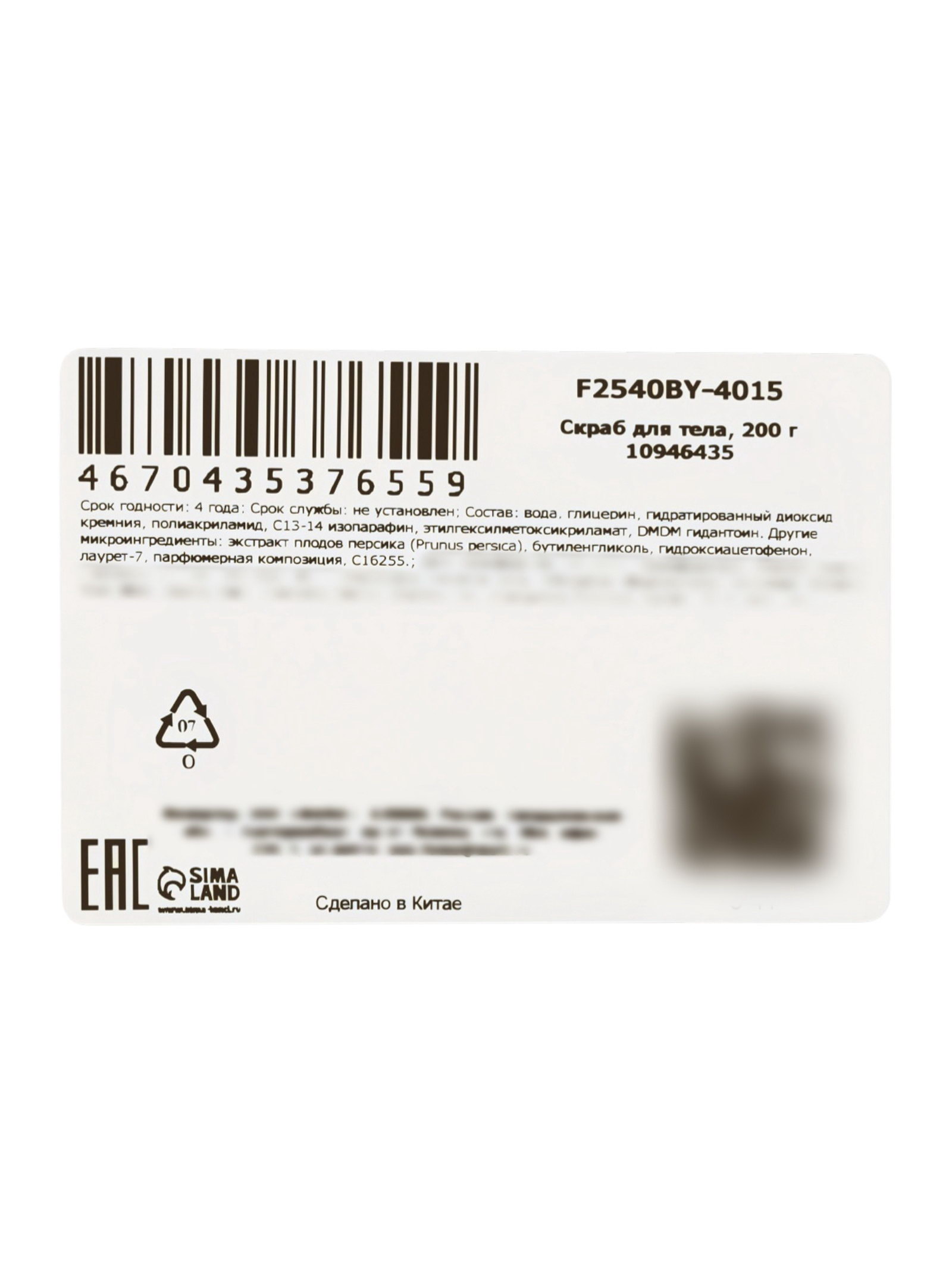 Скраб для тела увлажняющий с ароматом персика, 200 г, Китай