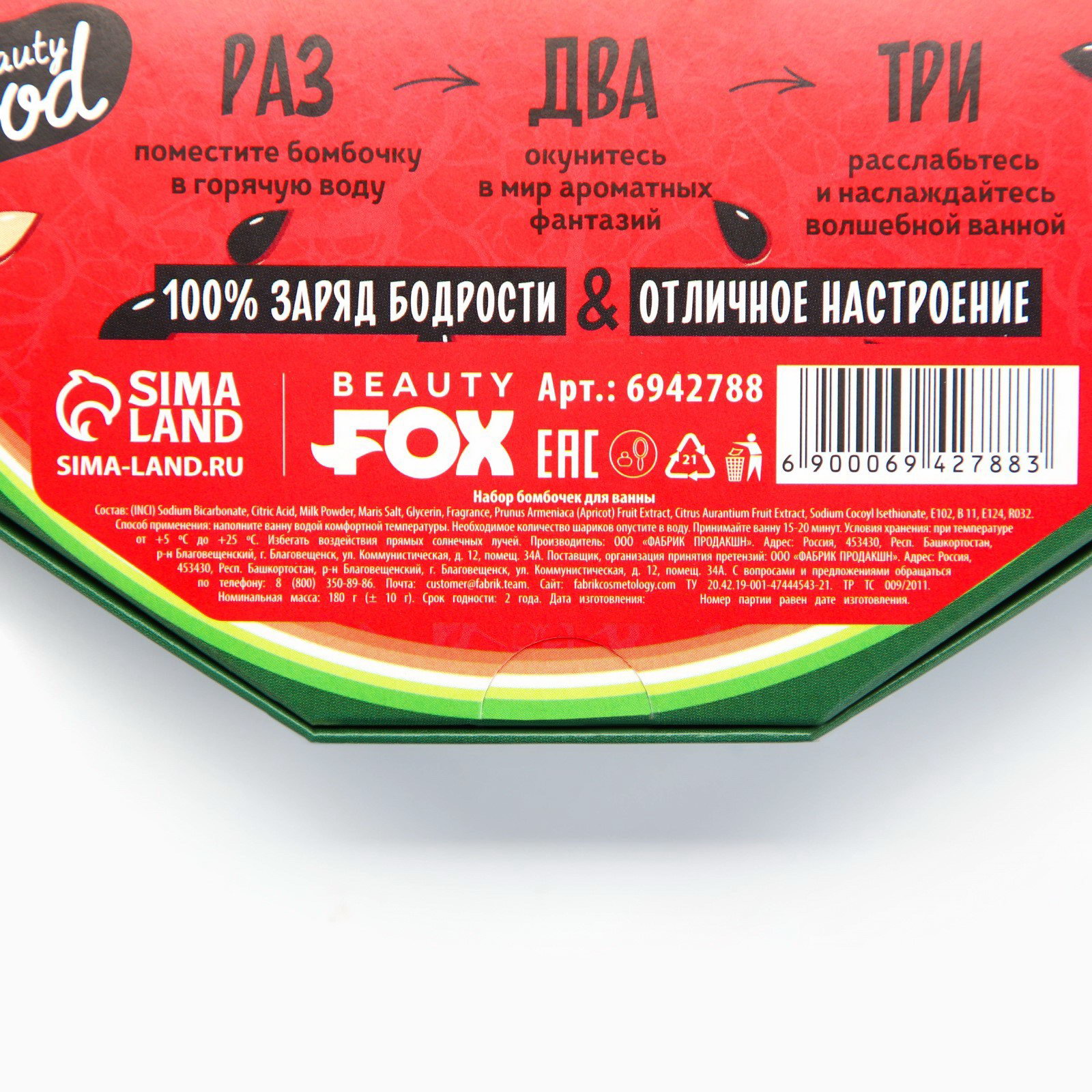 Бомбочки для ванны "Арбузный фреш", 9x20 г, BEAUTY FOOD, Beauty Fox, Россия