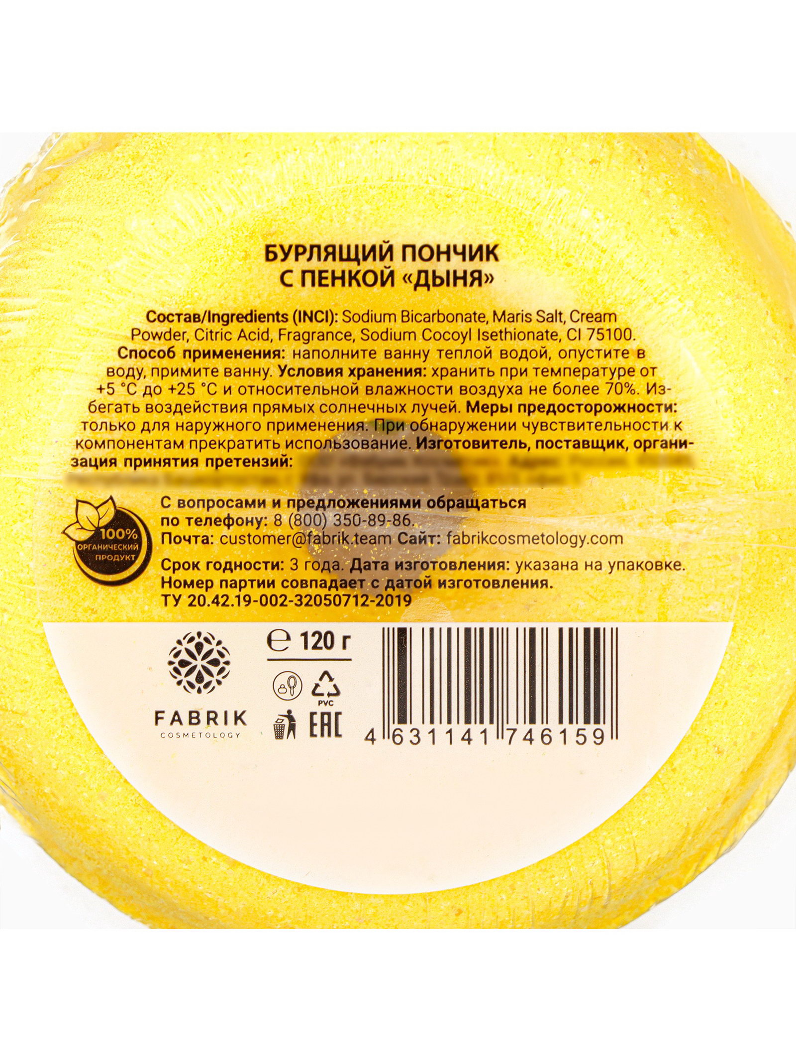 Бомбочка для ванн с пенкой, дыня, 120 г, Fabrik Cosmetology, Россия