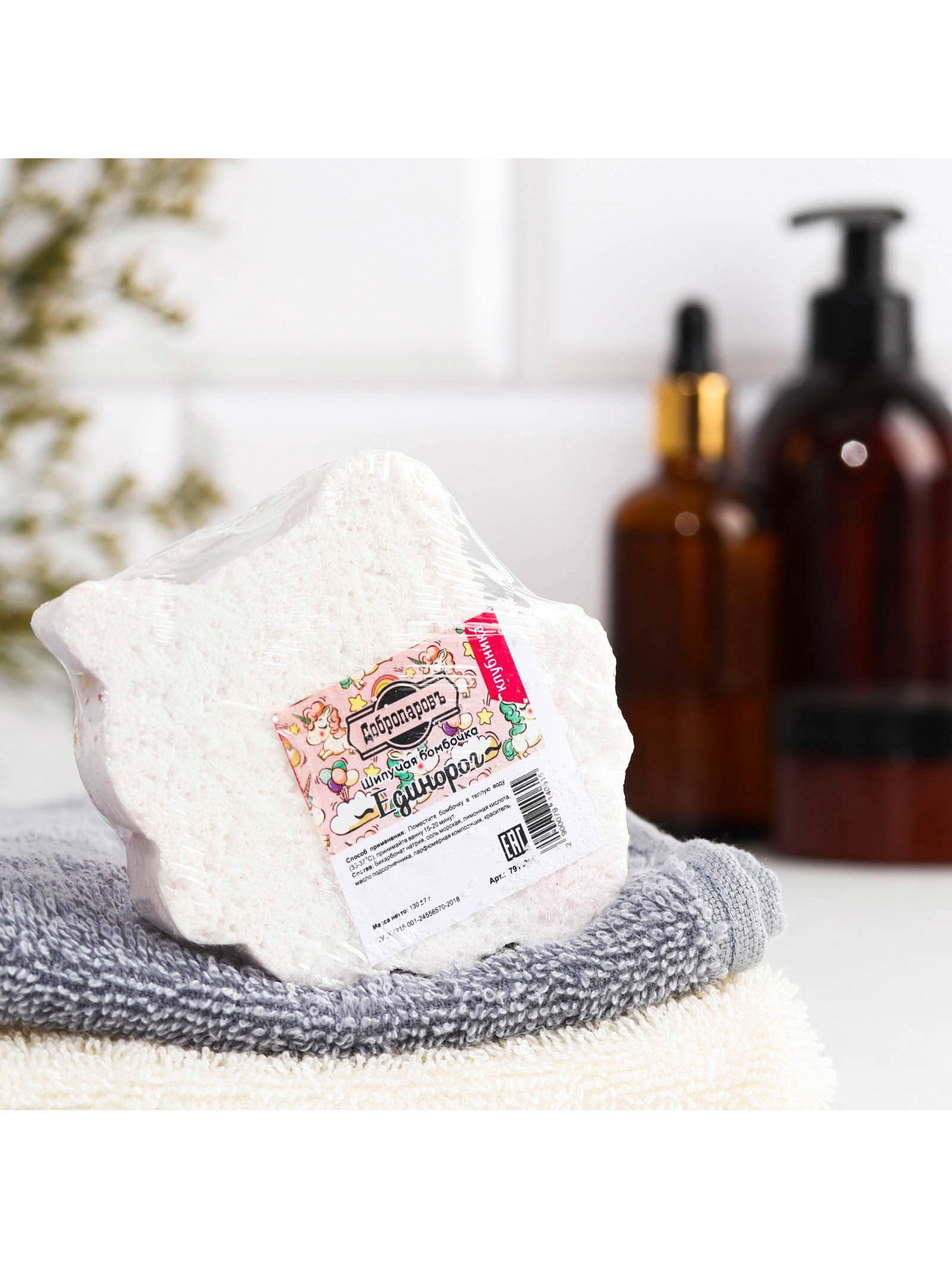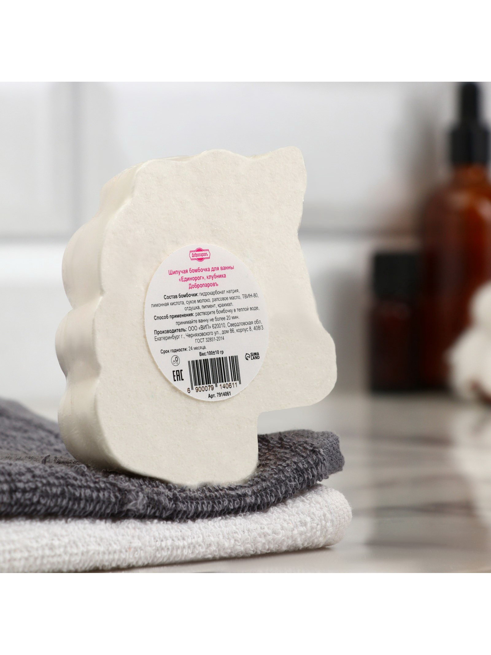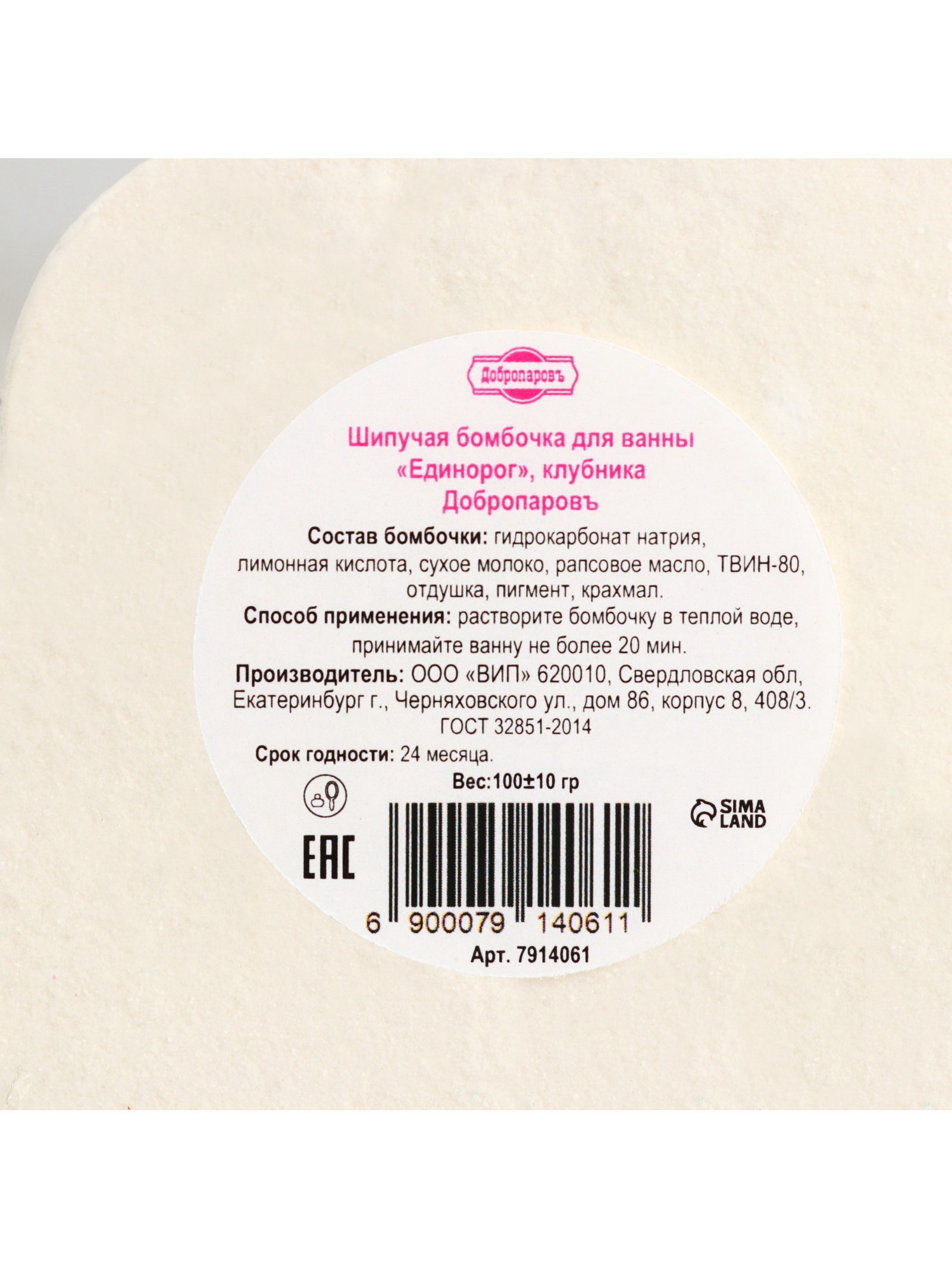 Бомбочка для ванны с шиммером "Единорог" 100 гр аромат клубника, Добропаровъ, Россия
