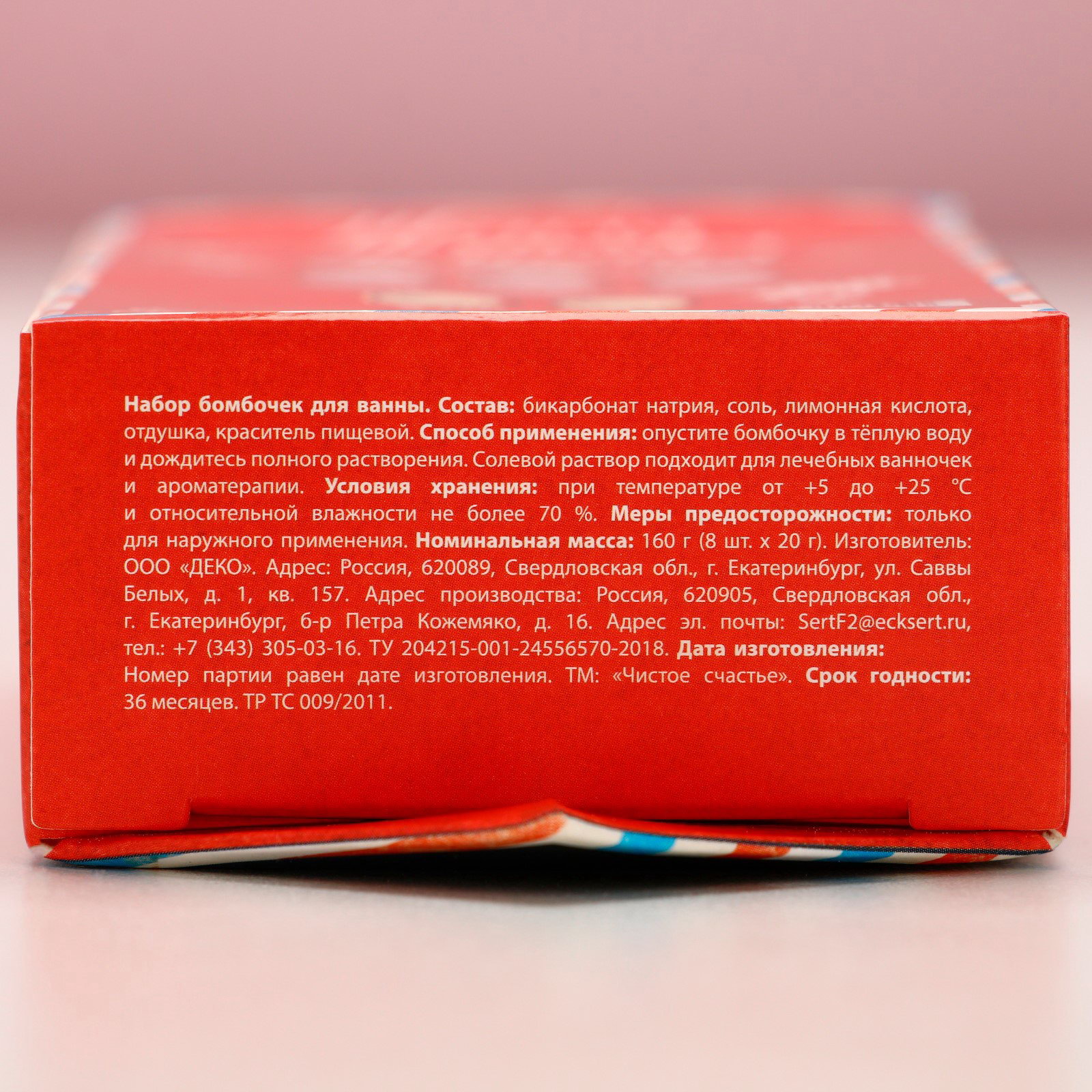 Бомбочки для ванны "С праздником", аромат ваниль, мед, роза, 8x20 г, Чистое счастье, Россия