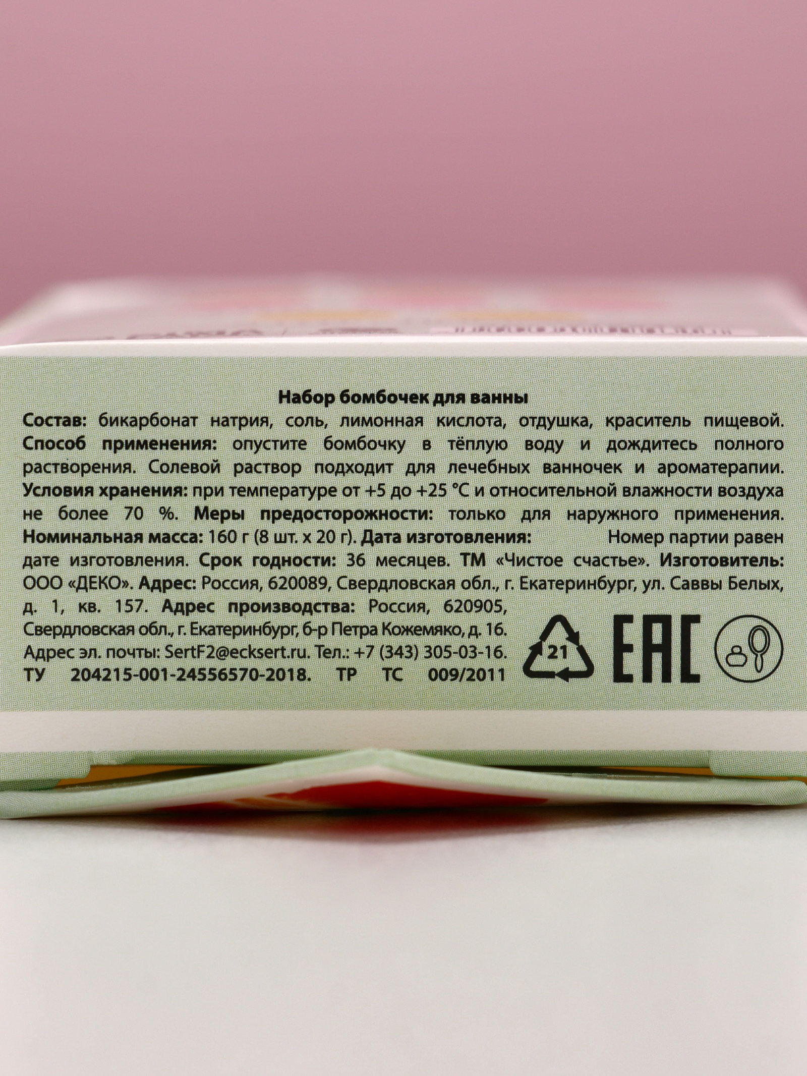 Бомбочки для ванны "С 8 Марта", 8x20 г, Чистое счастье, Россия