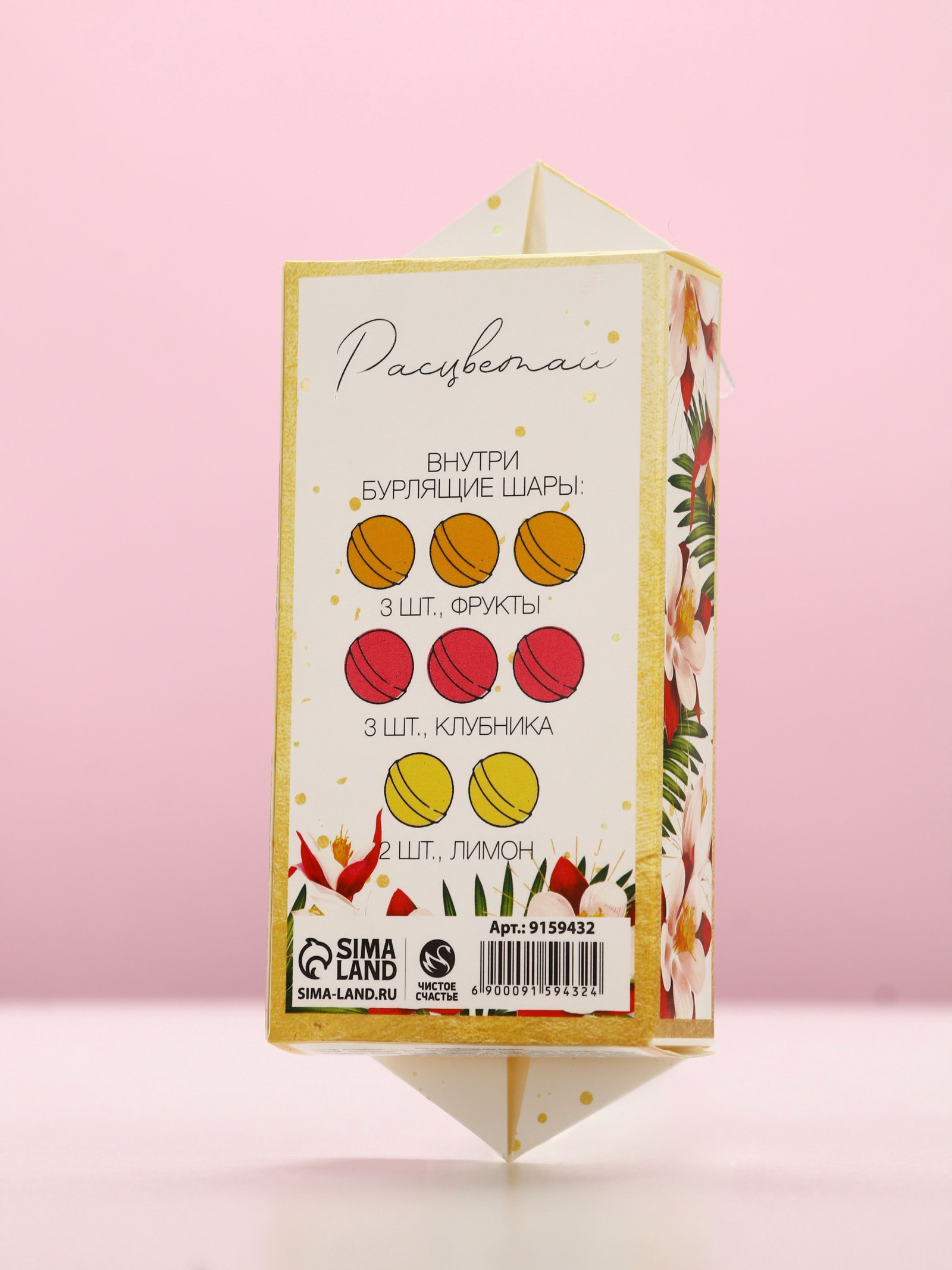 Возраст: Взрослый, Для взрослых Аромат: Клубника, Лимон, Фруктовый микс Тематика подарка: Ароматерапия, Уходовая косметика Размер упаковки: 6.5 x 3.5 x 16.5 см. Темпер. ограничение НЕ НИЖЕ ℃: +5 Темпер. ограничение НЕ ВЫШЕ ℃: +25 Тематика праздника: 8 Марта Форма: Шар Назначение: Тонизирование Адресат: Без адресата Адресат: Без адресата tnved: 3401110000 Особенности: Без особенностей Набор: Да Вес, г: 20 Для кого: Для женщины В наборе, шт.: 8 Область применения: Для тела Вид упаковки: Подарочная коробка | ||