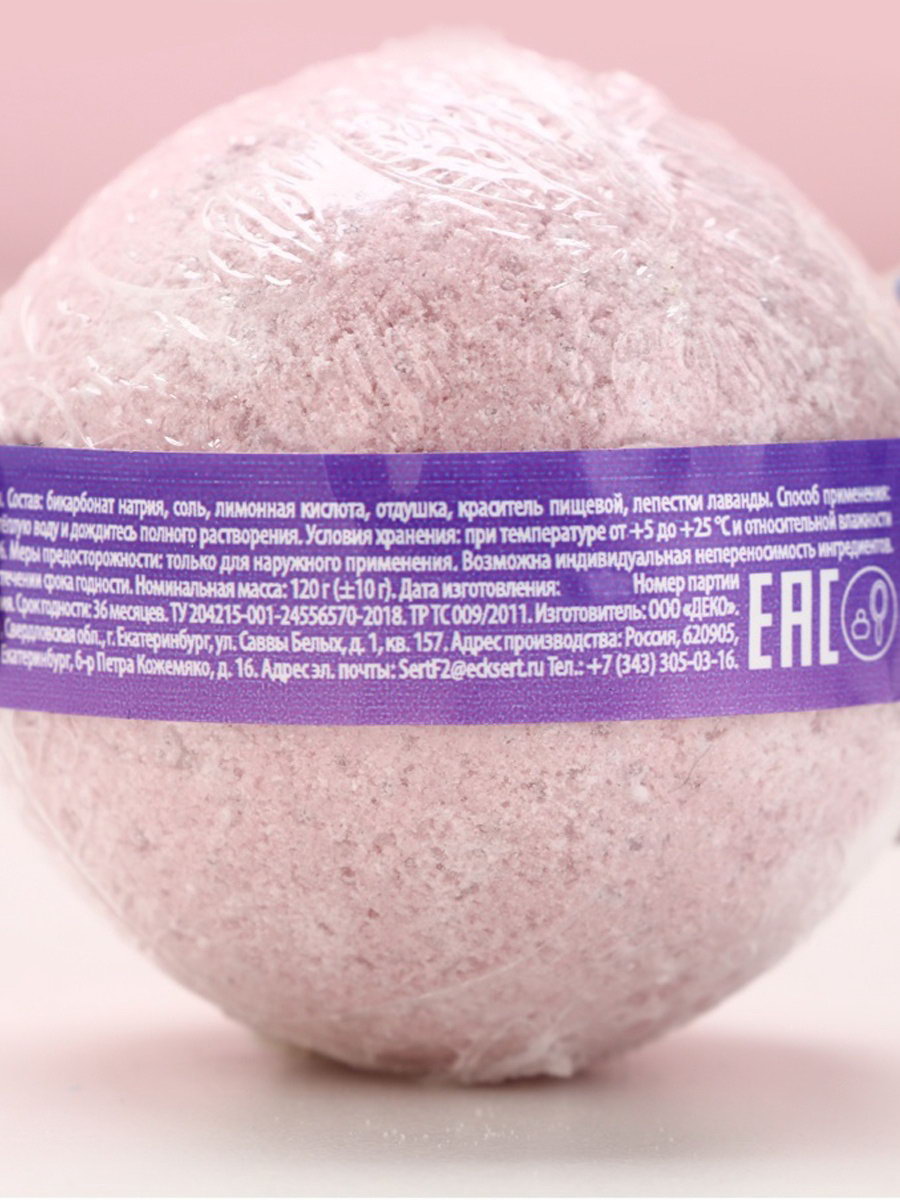 Бомбочка для ванны с лепестками лаванды "С 8 Марта", 120 г, Чистое счастье, Россия