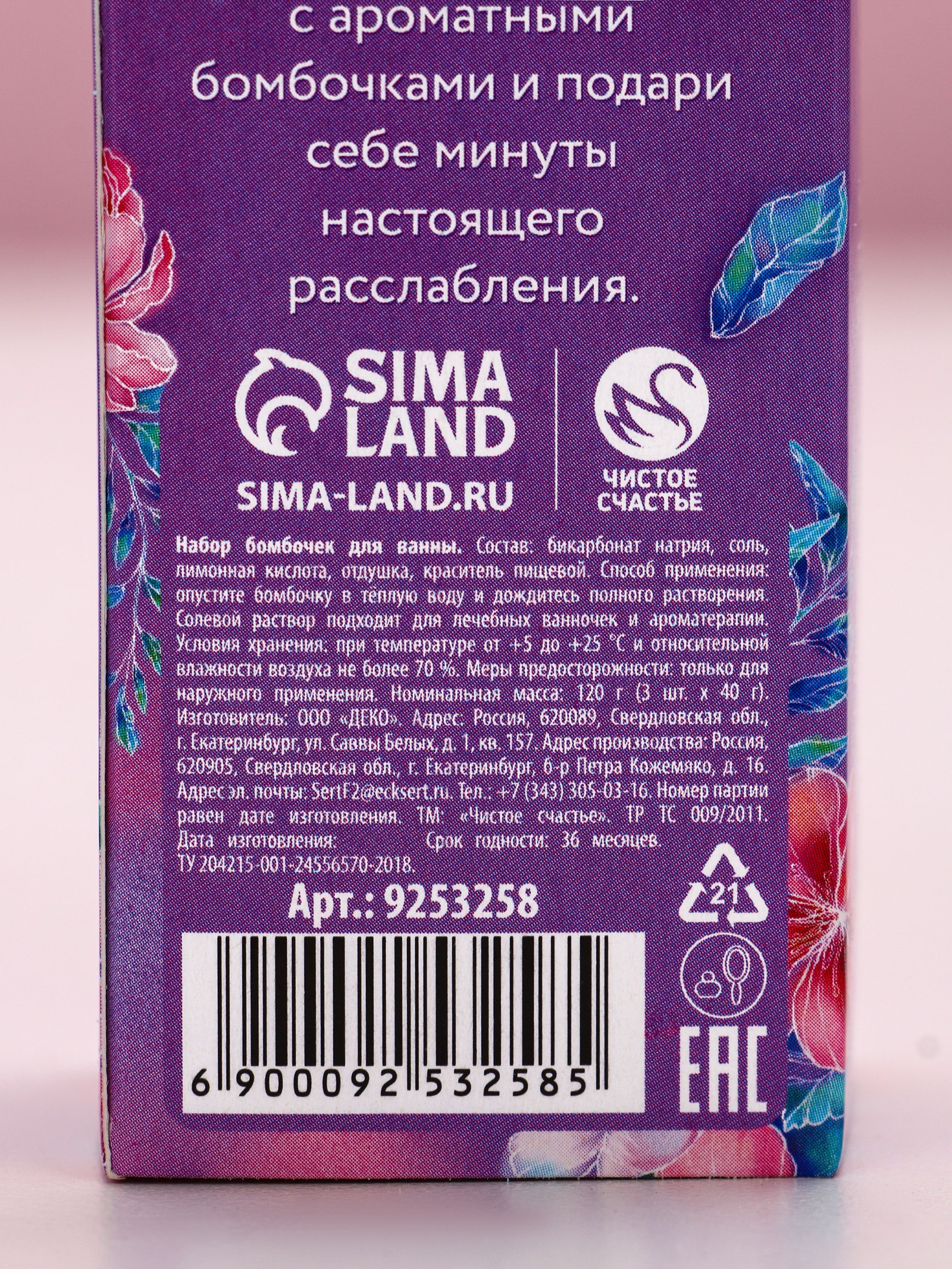 Бомбочки для ванны с добавками "С 8 Марта", 3x40 г, Чистое счастье, Россия