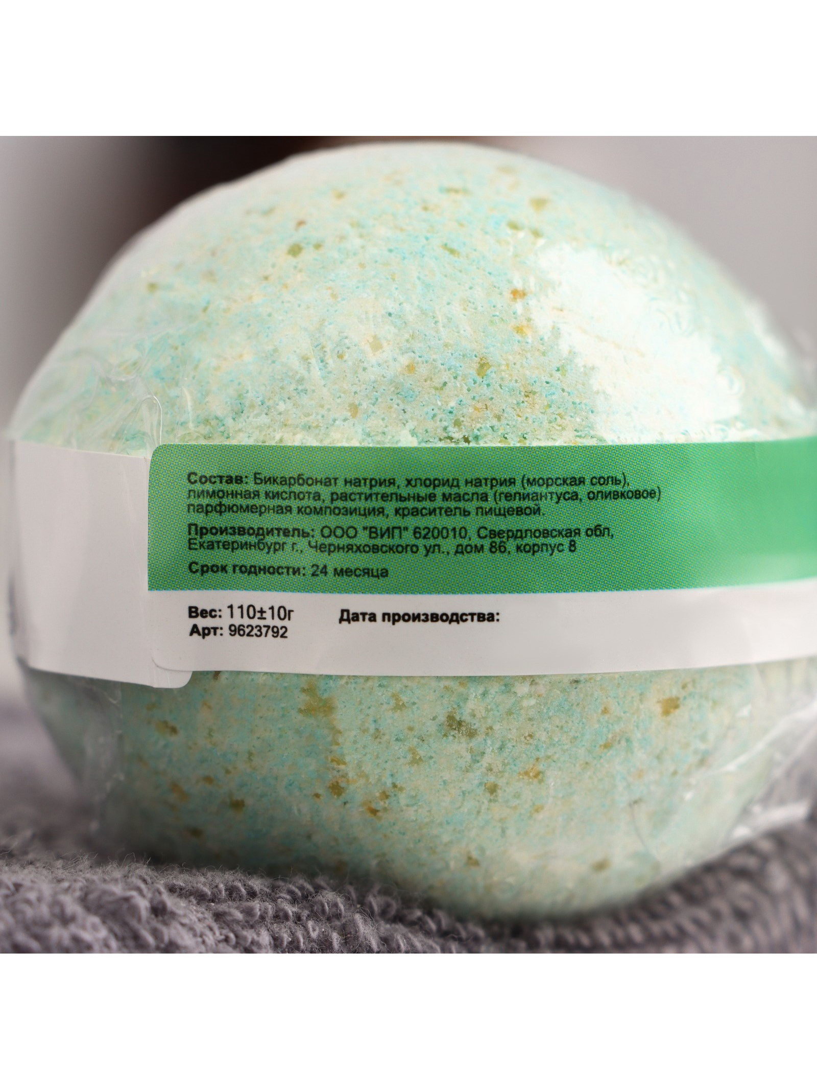 Размер упаковки: 6 x 6 x 6 см. Ароматизированная: Да Цвет: Зелёный Адресат: Без адресата Для кого: Унисекс Область применения: Для тела Вид: Бомбочка Возраст: Любой Тематика подарка: Уходовая косметика Форма: Шар Форма: Шар tnved: 3307300000 tnved: 3307300000 Температурное ограничение: Нет Набор: Нет Особенности: С солью Аромат: Хвойный лес Вес, г: 110 Тематика праздника: Универсальная тематика Польза бомбочек для ванной доказана исследованиями ее ингредиентов. Сода смягчает и разглаживает кожу, помогает избавиться от сухости. Этот компонент хорошо очищает кожу от омертвевших клеток и очищает поры. Лимонная кислота действует как мягкий химических пилинг без образования шелушащихся участков. Кожа становится более эластичной, клетки эпидермиса быстрее обновляются, морщинки сокращаются, а тон кожи выравнивается. Помимо эффектного бурления и приятного запаха, бомбочки для ванны имеют и полезные свойства. Они тонизируют, благоприятно воздействуют на кожу, оздоравливают, помогают снять стресс, отвлечься от забот, да и в целом улучшают настроение. Польза бомбочки напрямую зависит от того, что входит в ее состав: