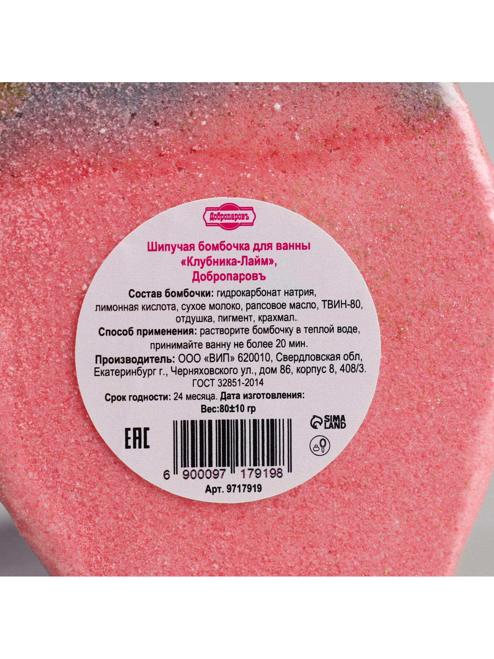 Бомбочка для ванны "Клубника-Лайм", 80 г, Добропаровъ, Россия