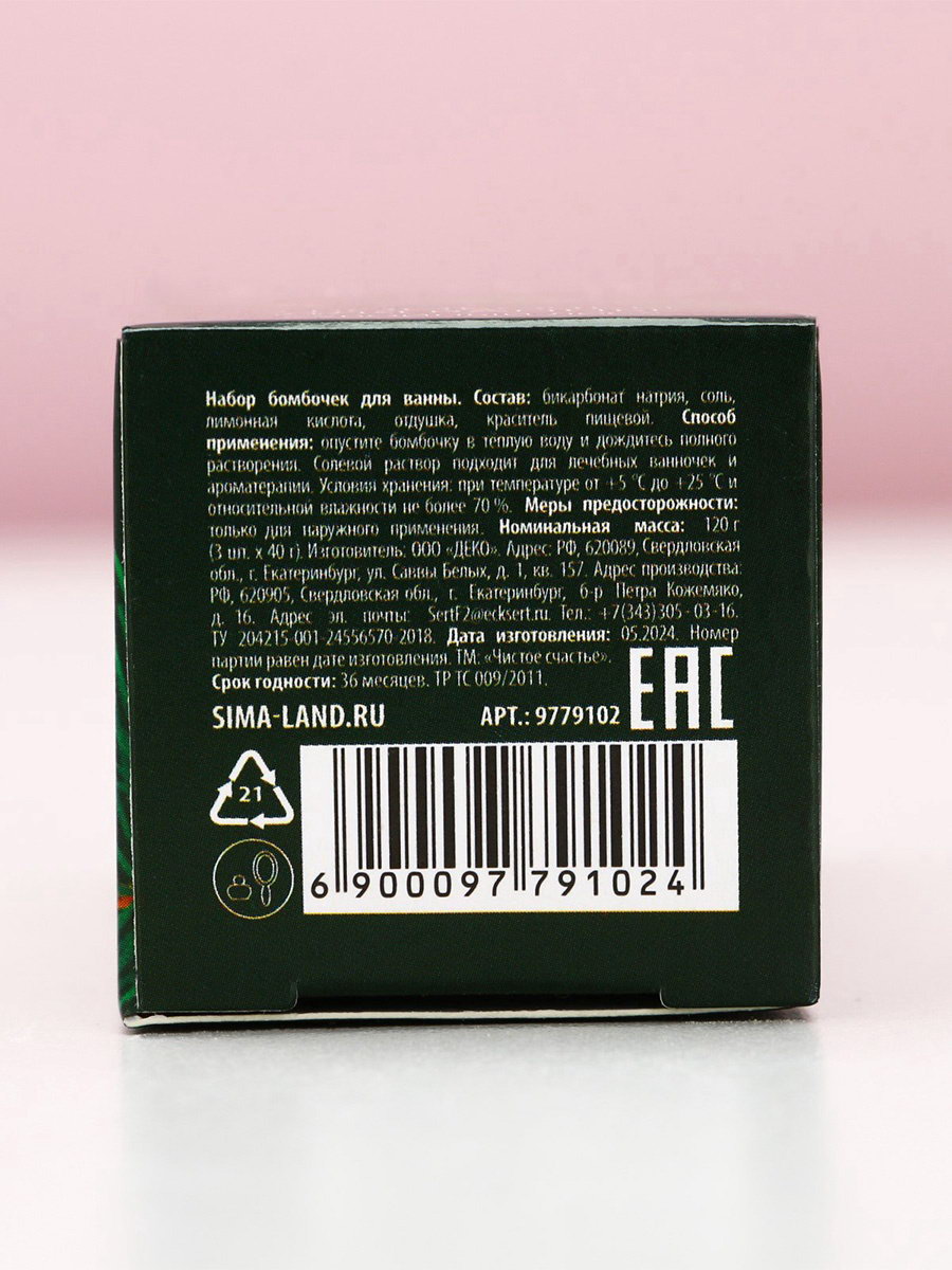 Бомбочки для ванны "Верь в мечту", 3x40 г, аромат хвойный лес, Чистое счастье, Россия
