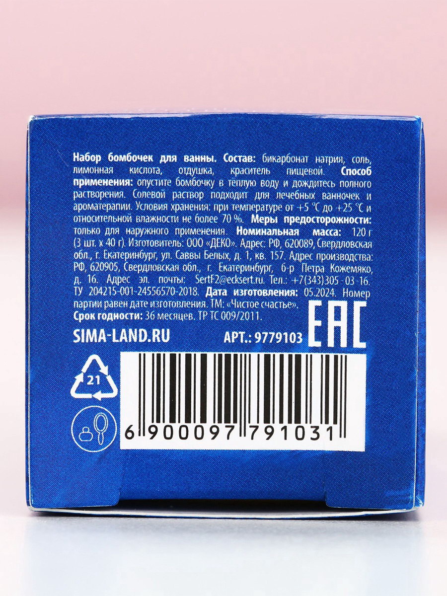 Бомбочки для ванны "Мечты сбудутся!", аромат морозная свежесть, 3x40 г, Чистое счастье, Россия
