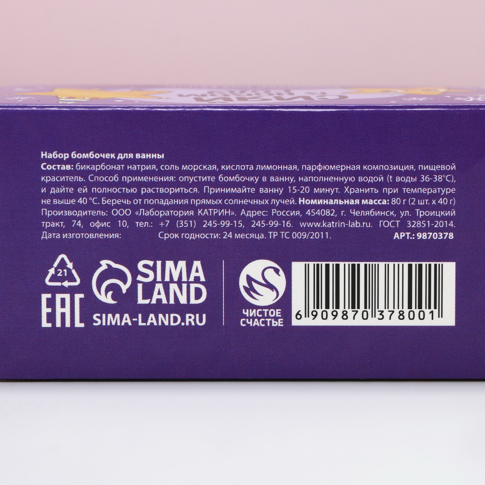 Область применения: Для тела, Для тела Возраст: Взрослый, Для взрослых, Для всех возрастов Вид: Бомбочка, Бомбочка для ванн Размер упаковки: 4.5 x 11.5 x 4.5 см. Символ года: Нет Тематика: Новогодняя Цвет: Фиолетовый Адресат: Без адресата Назначение: Тонизирование Аромат: Лаванда Вес, г/Объём, мл: 40 Вес, г: 40 Форма: Шар Темпер. ограничение НЕ НИЖЕ ℃: +5 Вид упаковки: Подарочная коробка Темпер. ограничение НЕ ВЫШЕ ℃: +25 tnved: 3304990000 tnved: 3304990000 Составляющие набора: Бомбочка для ванн Набор: Да Особенности: Без особенностей Тематика праздника: Новый год Тематика подарка: Уходовая косметика Для кого: Для женщины В наборе, шт.: 2 | ||