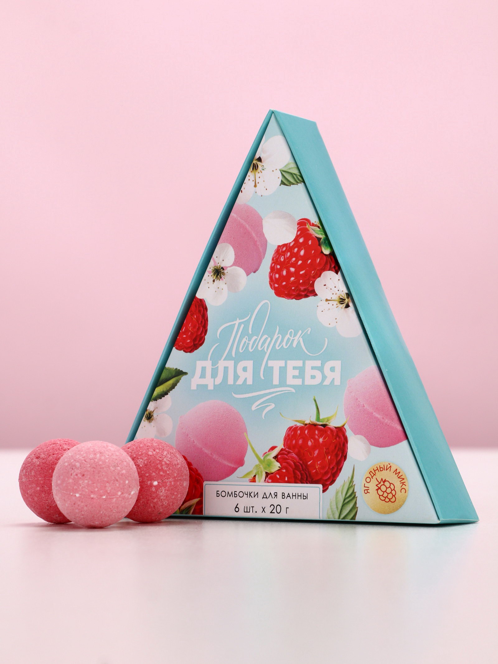 Бомбочки для ванны "Подарок для тебя", аромат спелых ягод, 6x20 г, Чистое счастье, Россия