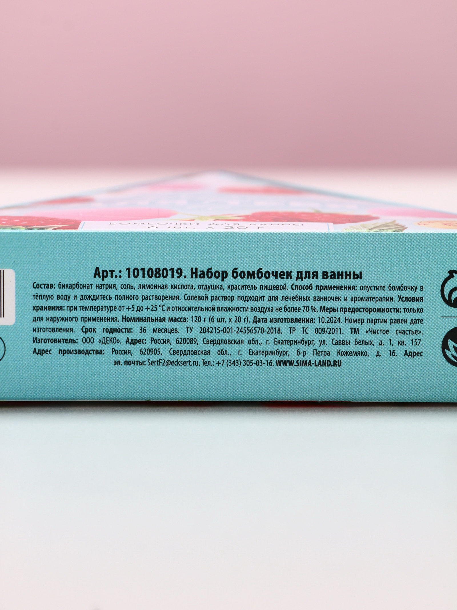 Возраст: Взрослый, Для взрослых Размер упаковки: 14 x 15 x 3.5 см. Набор: Да Особенности: Без особенностей Аромат: Ягоды Вид упаковки: Картонная упаковка Темпер. ограничение НЕ ВЫШЕ ℃: +25 Темпер. ограничение НЕ НИЖЕ ℃: +5 Тематика подарка: Уходовая косметика Для кого: Для женщины Область применения: Для тела Назначение: Увлажнение Цвет: Розовый В наборе, шт.: 6 Вес, г: 120 Вид: Бомбочка Тематика праздника: 8 Марта Форма: Шар Адресат: Без адресата tnved: 3401300000 tnved: 3401300000 | ||