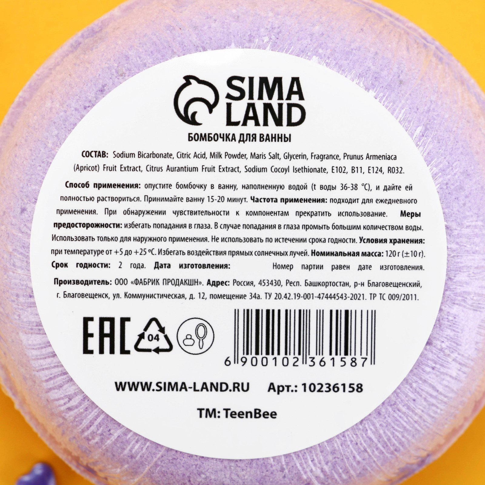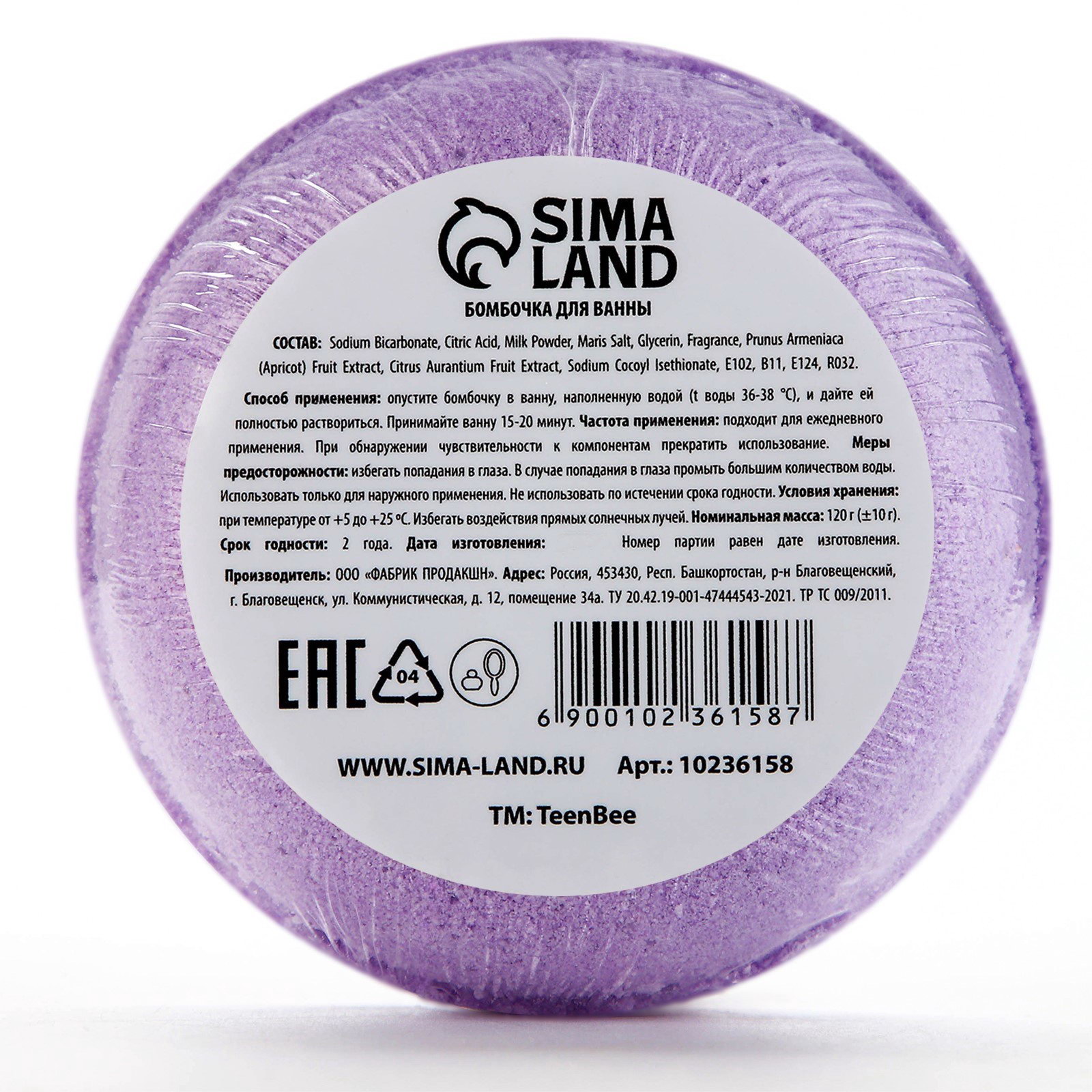 Бомбочка для ванны, 120 г, аромат черники, TeenBee, Россия
