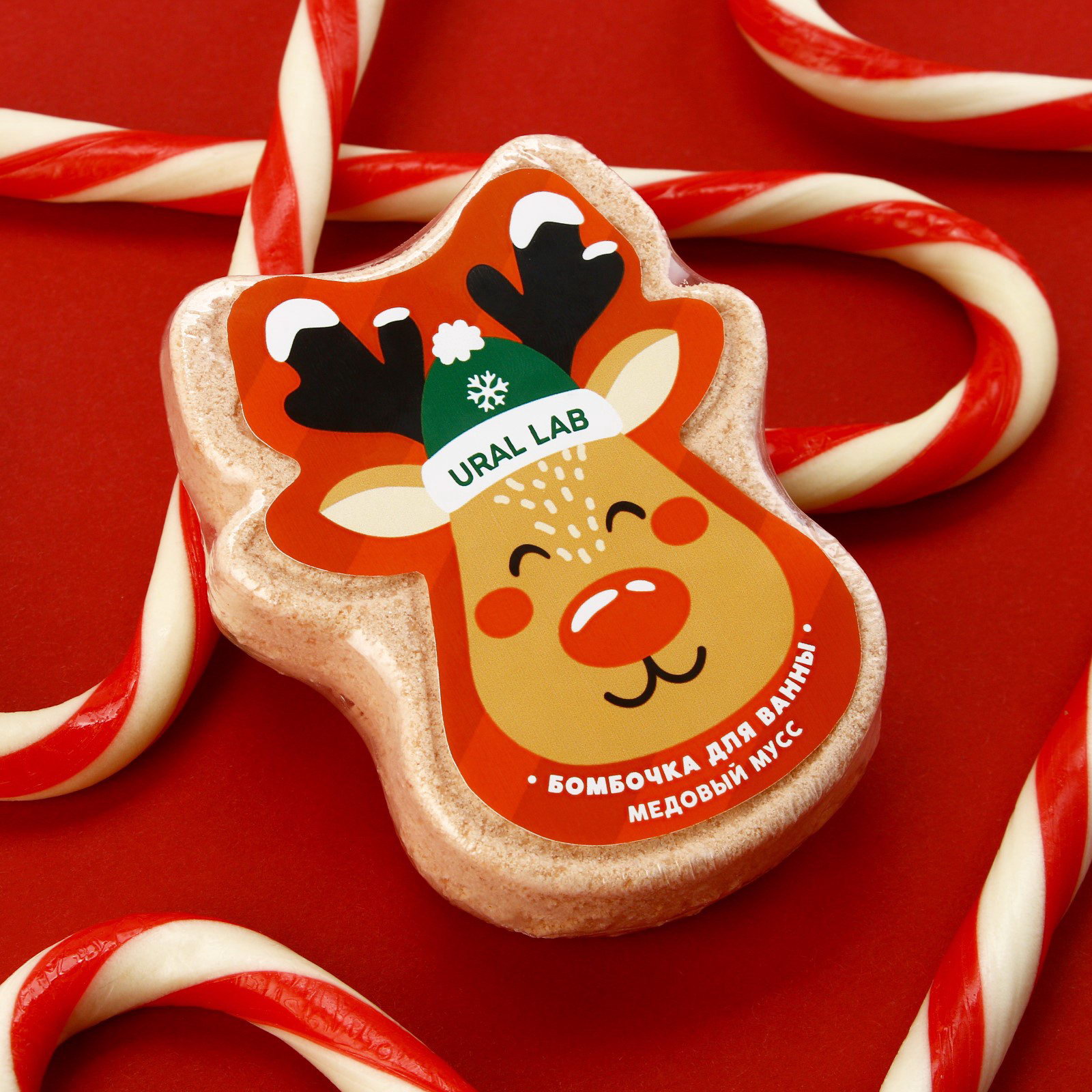 Бомбочка для ванны "Оленёнок", 130 г, аромат медового мусса, Новый Год, URAL LAB, Россия