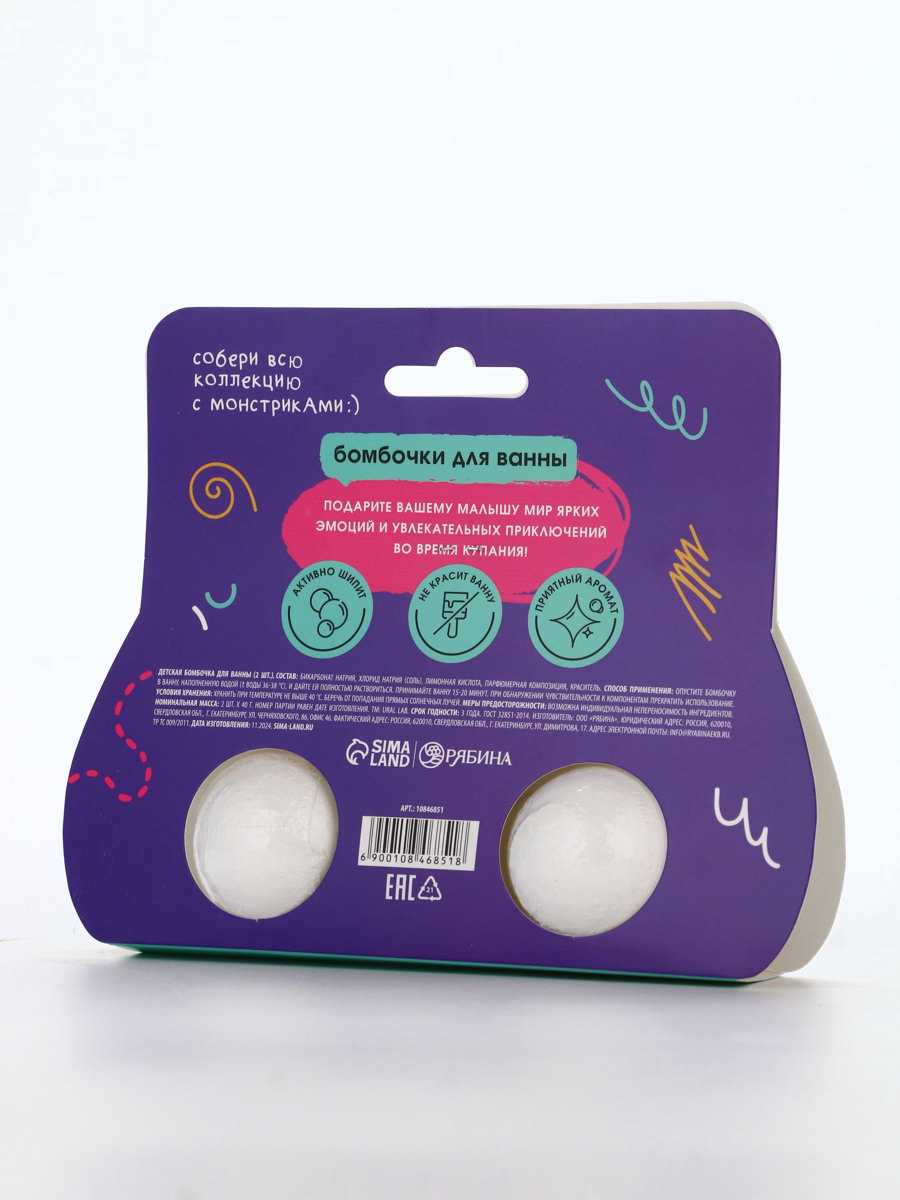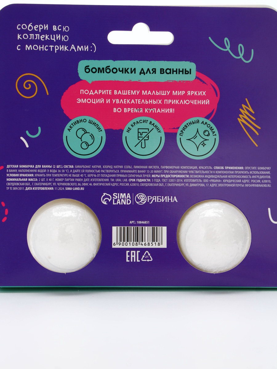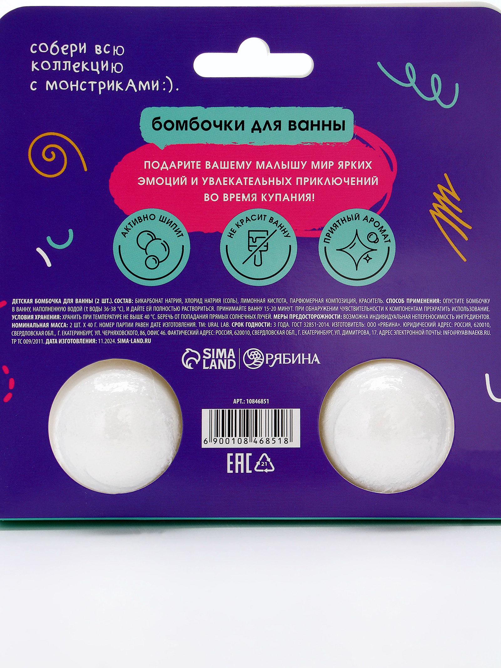 Бомбочки детские для ванны "Монстрики", 2x40 г, аромат сладкий кокосик ULAB, URAL LAB, Россия