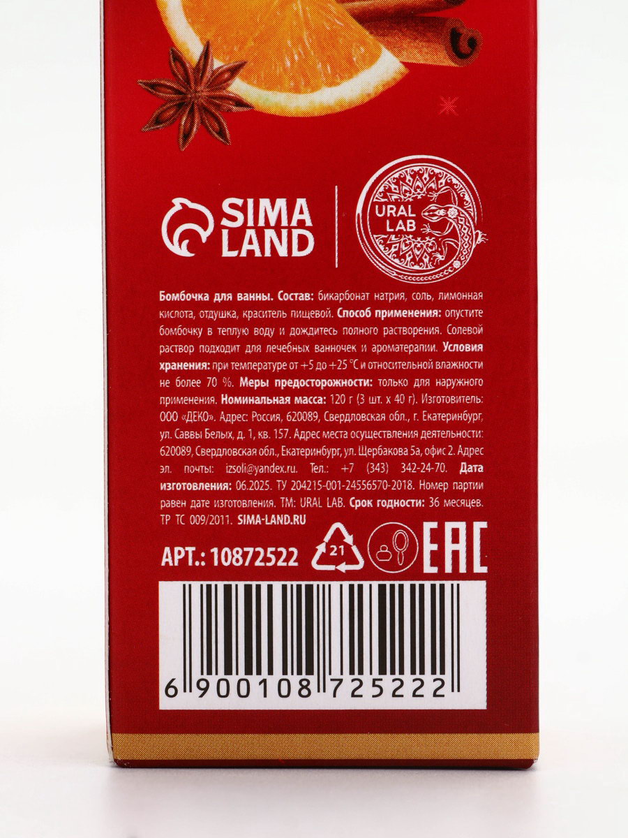 Бомбочки для ванны с ароматом глинтвейна, 3x40 г, URAL LAB, Россия