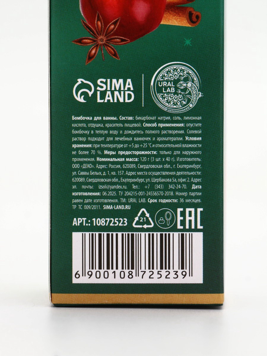 Бомбочки для ванны с ароматом яблочного пунша, 3x40 г, URAL LAB, Россия