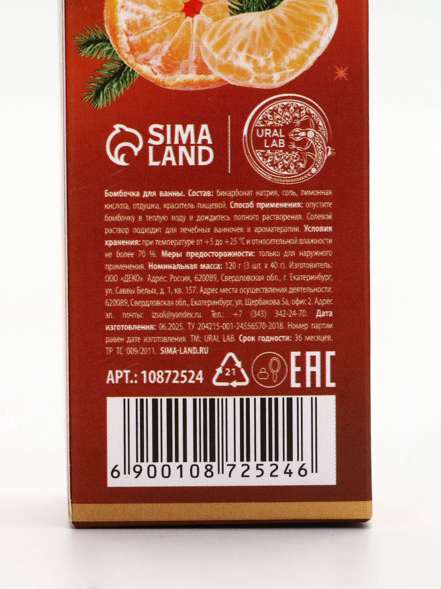 Бомбочки для ванны с ароматом мандарина, 3x40 г, URAL LAB, Россия