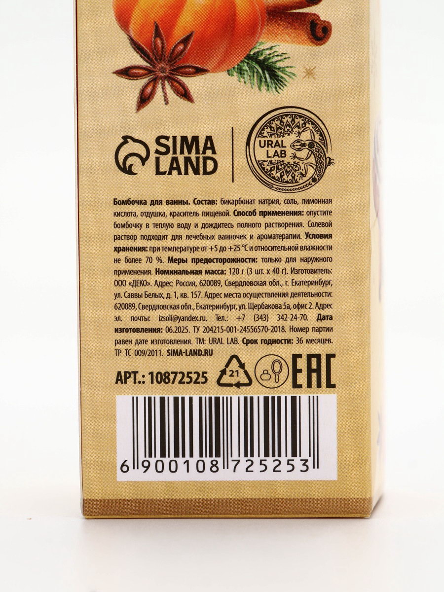Бомбочки для ванны с ароматом тыквенного штруделя, 3x40 г, URAL LAB, Россия