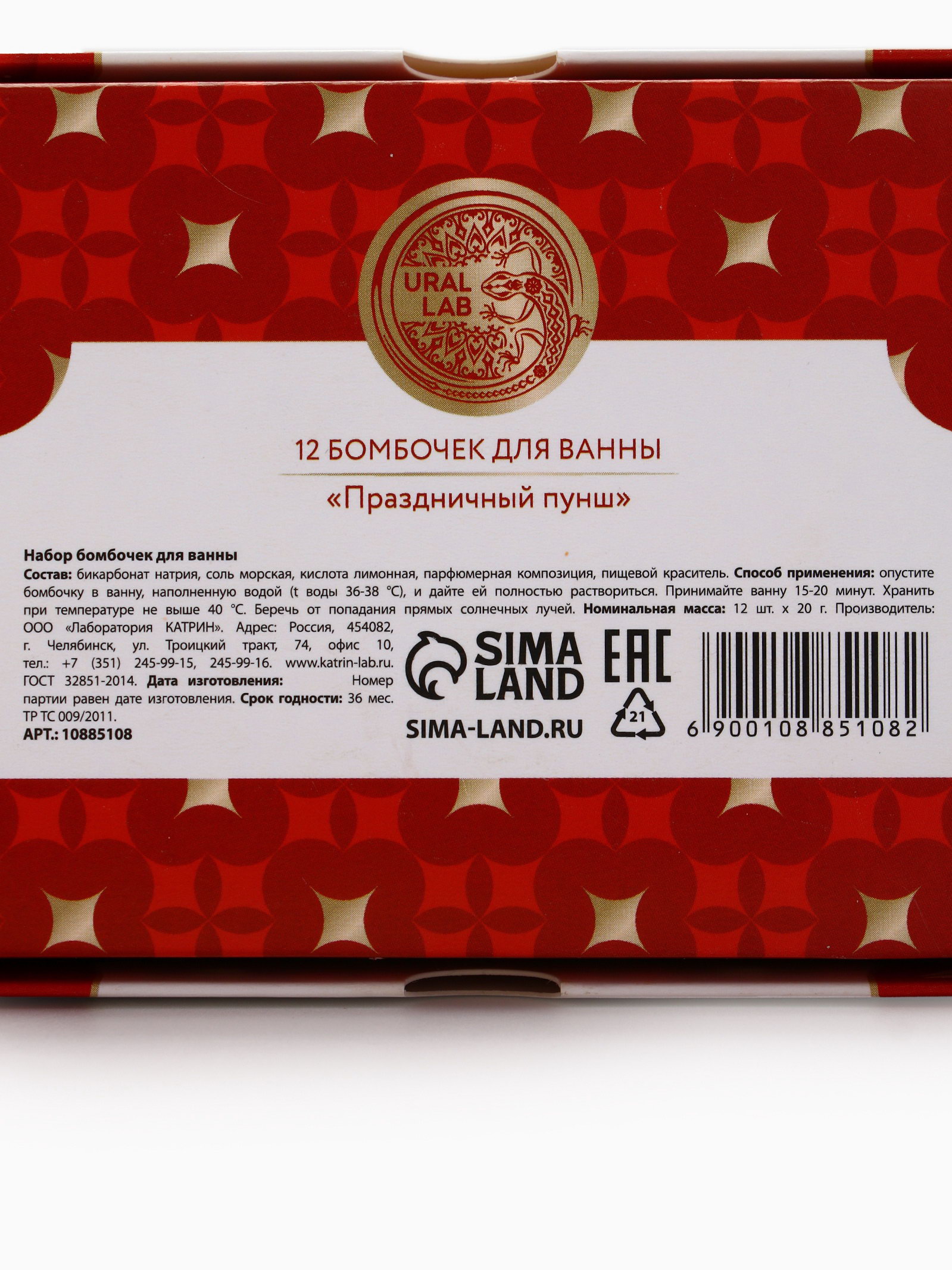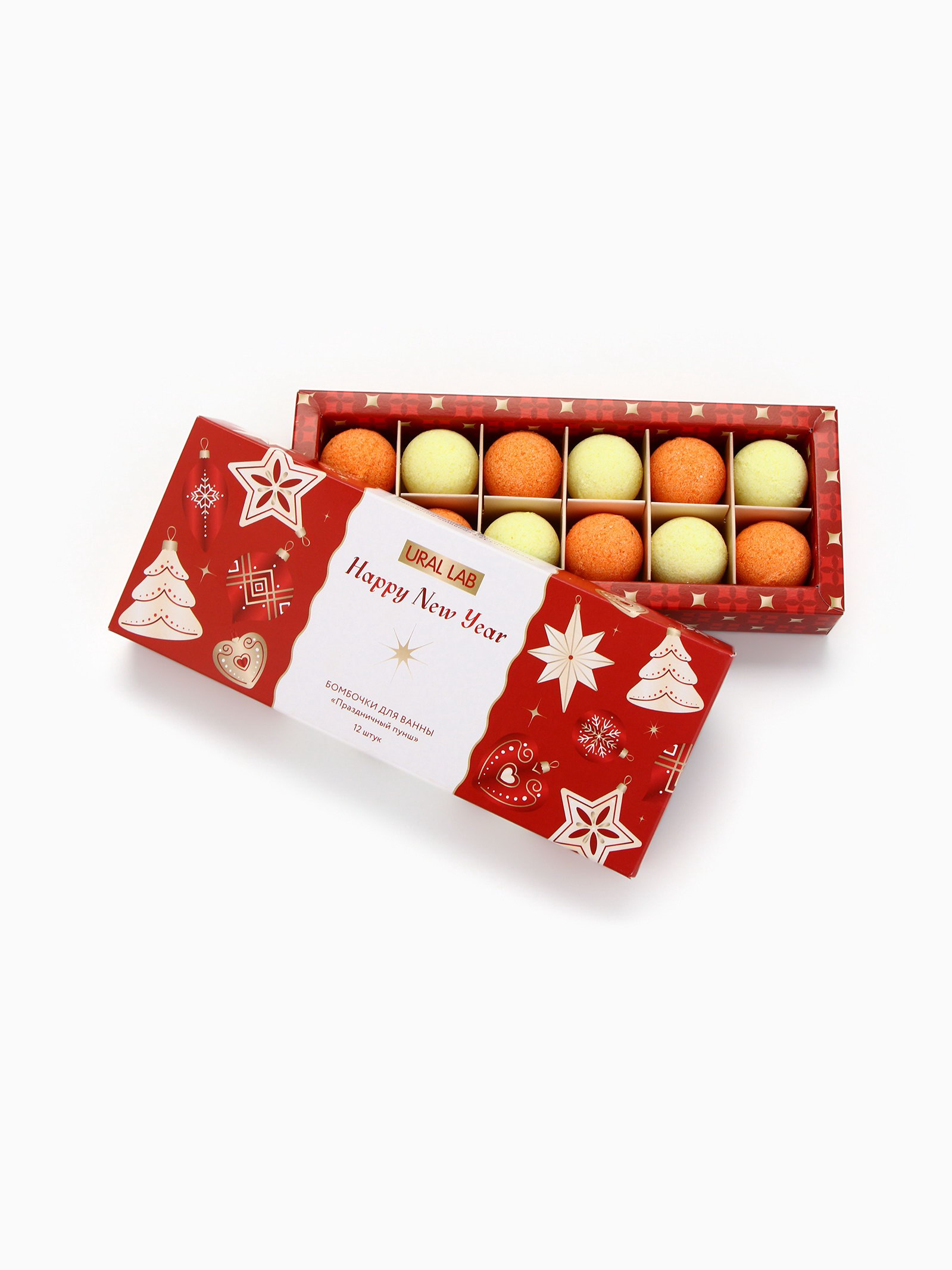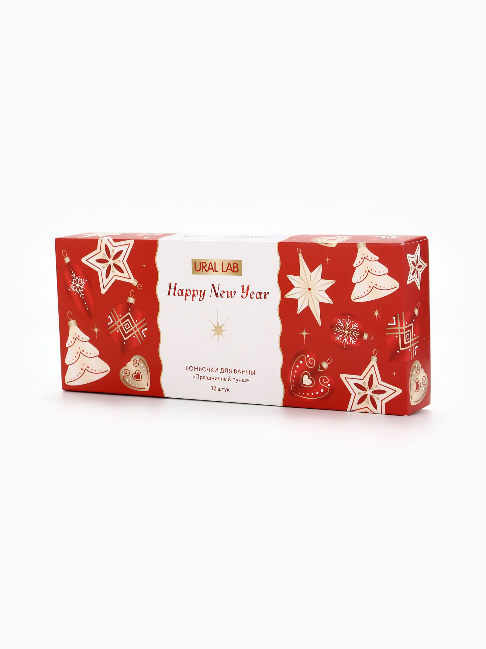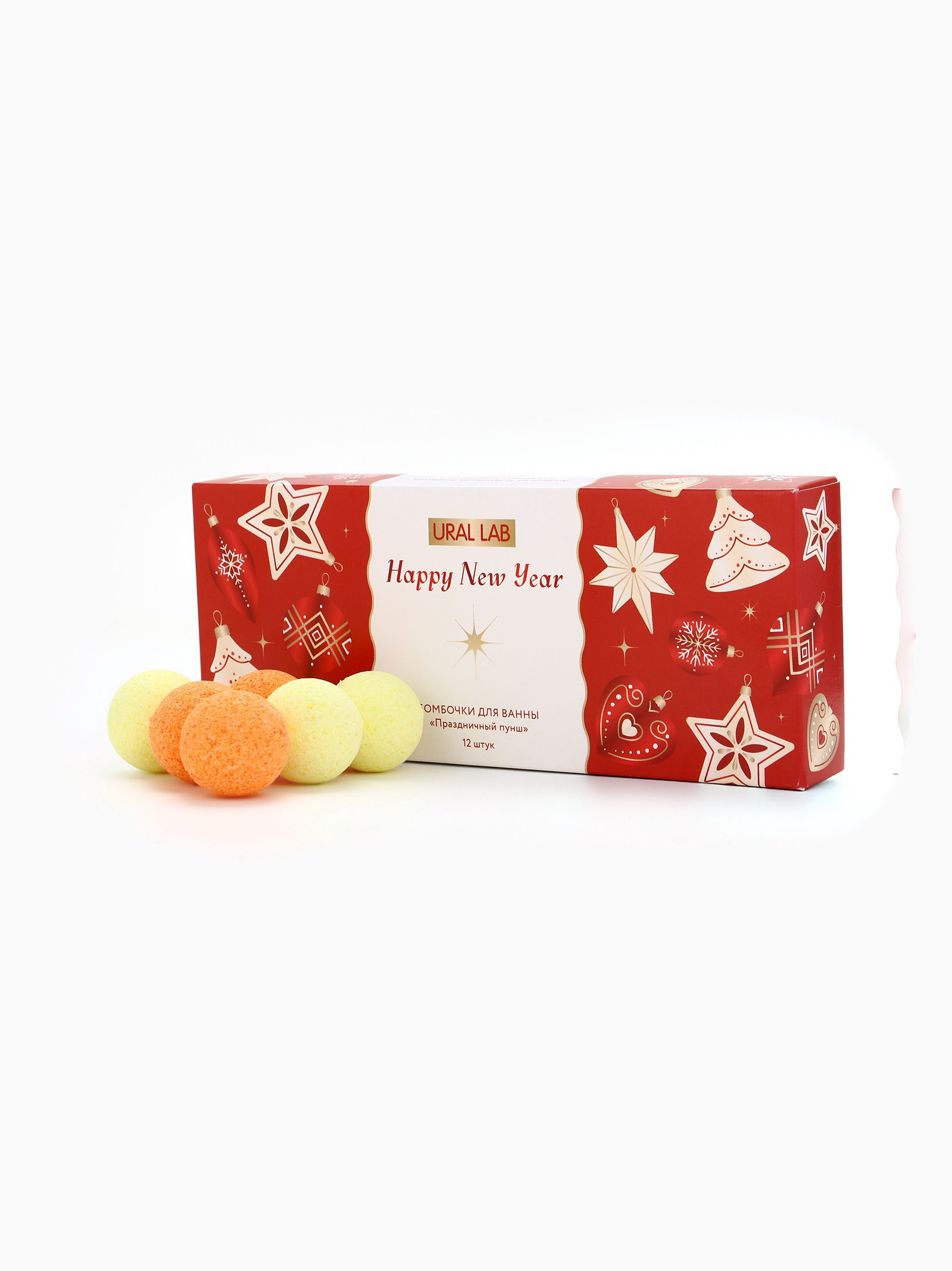 Бомбочки для ванны Happy New Year, аромат праздничный пунш, набор 12 шт. x 20 г, URAL LAB, Россия